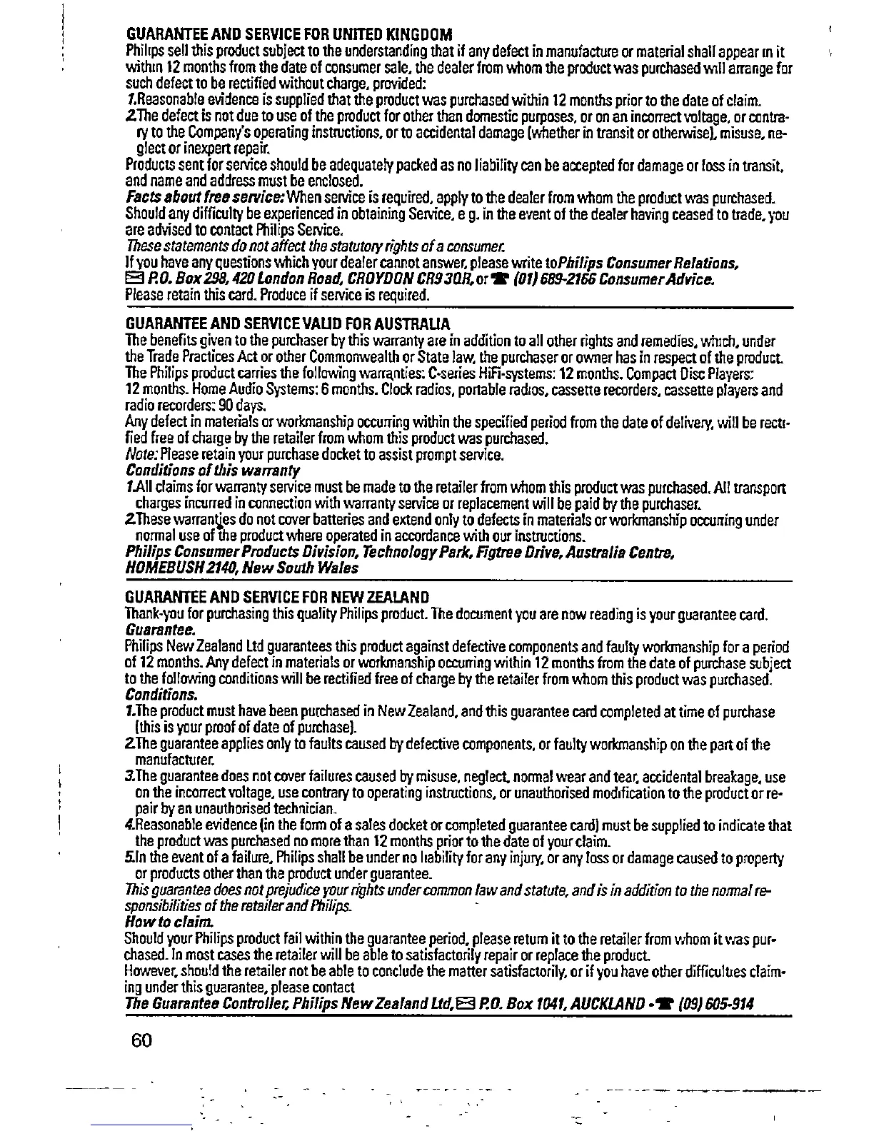Philips AZ 6813 - Warranty and Service Information; United Kingdom Guarantee and Service; Australia Guarantee and Service; New Zealand Guarantee and Service