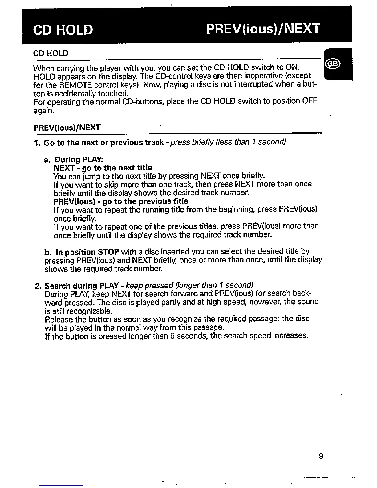 Philips AZ 6813 - Operation Features; CD HOLD Functionality; Track Navigation and Search