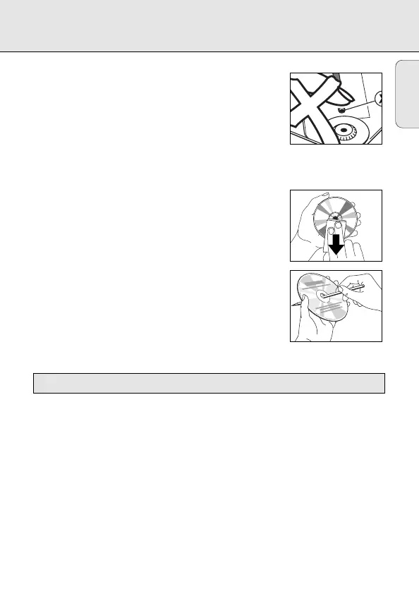 • CD’en skal altid løftes i kanterne og lægges tilbage i sin