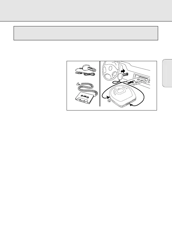 5 Liitä sovitinkasetin pistoke CD-soittimen p LINE OUT -liittimeen.
