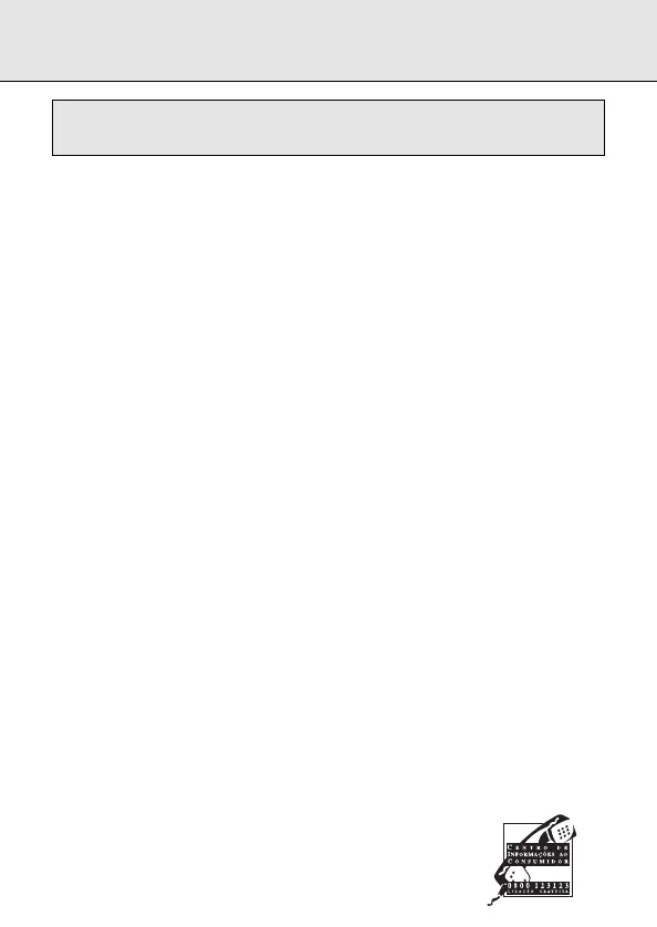 rede de oficinas autorizadas, ligue para o CENTRO DE INFORMAÇÕES AO CONSUMIDOR, TEL 0800-123123