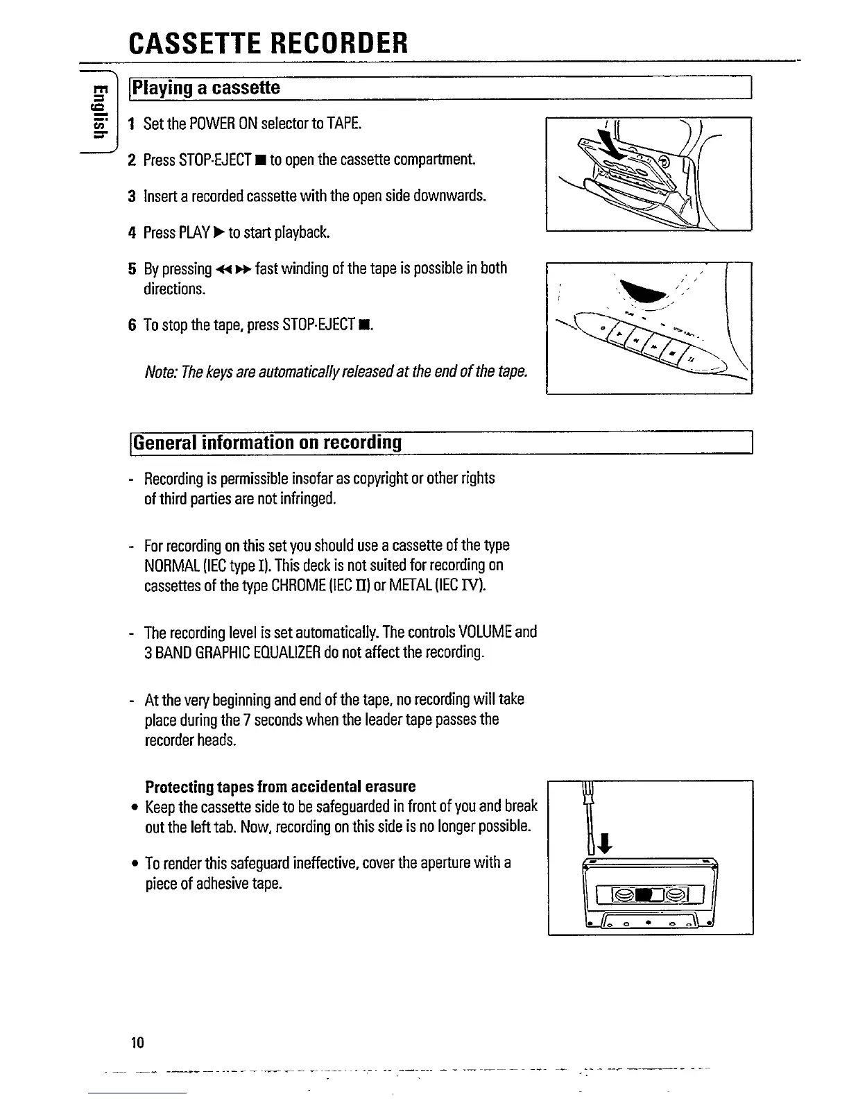 Philips AZ 8052 - Cassette Recorder Operations; Cassette Playback Guide