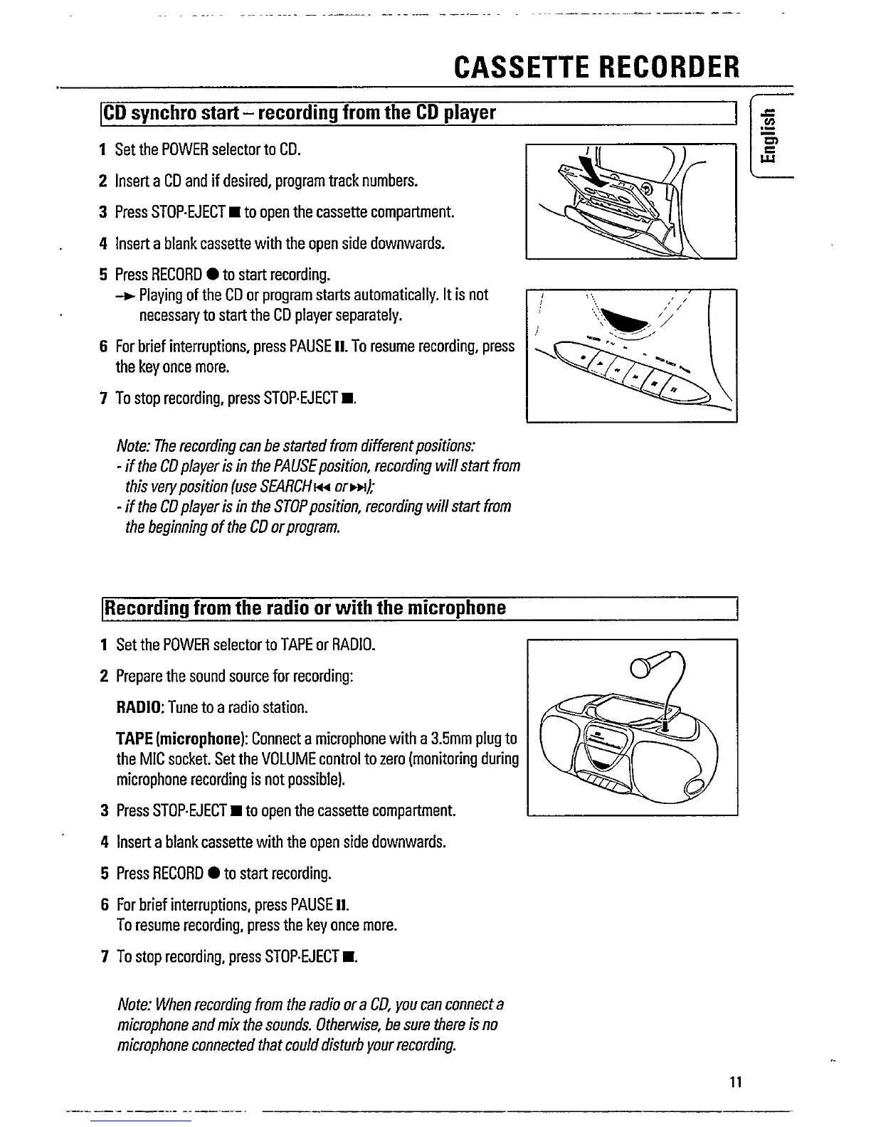 Philips AZ 8052 - Cassette Recording Methods; Synchronized CD to Cassette Recording; Recording from External Sources
