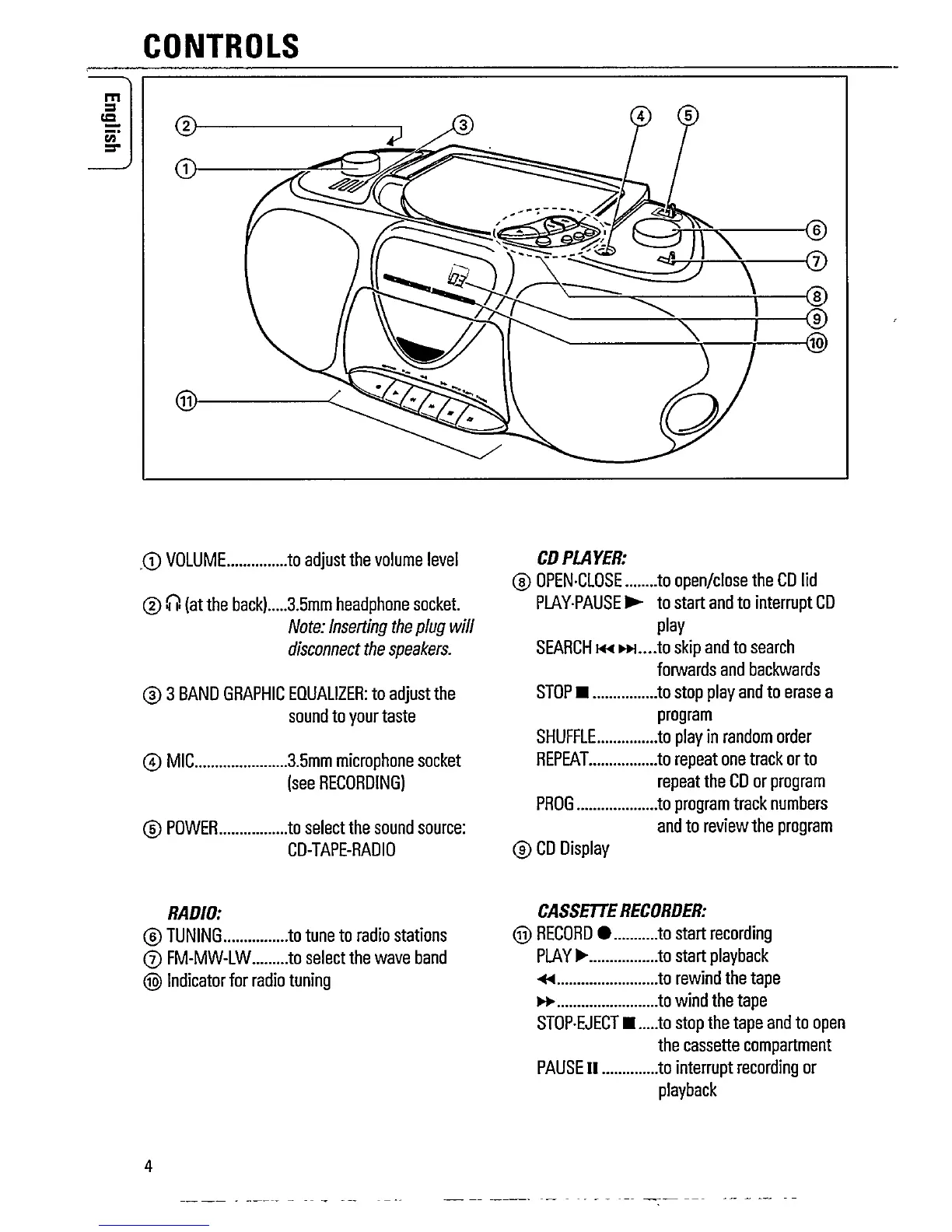 Philips AZ 8052 - Philips AZ8052 Controls Overview; Main Controls and Ports; Media Playback and Recording Controls