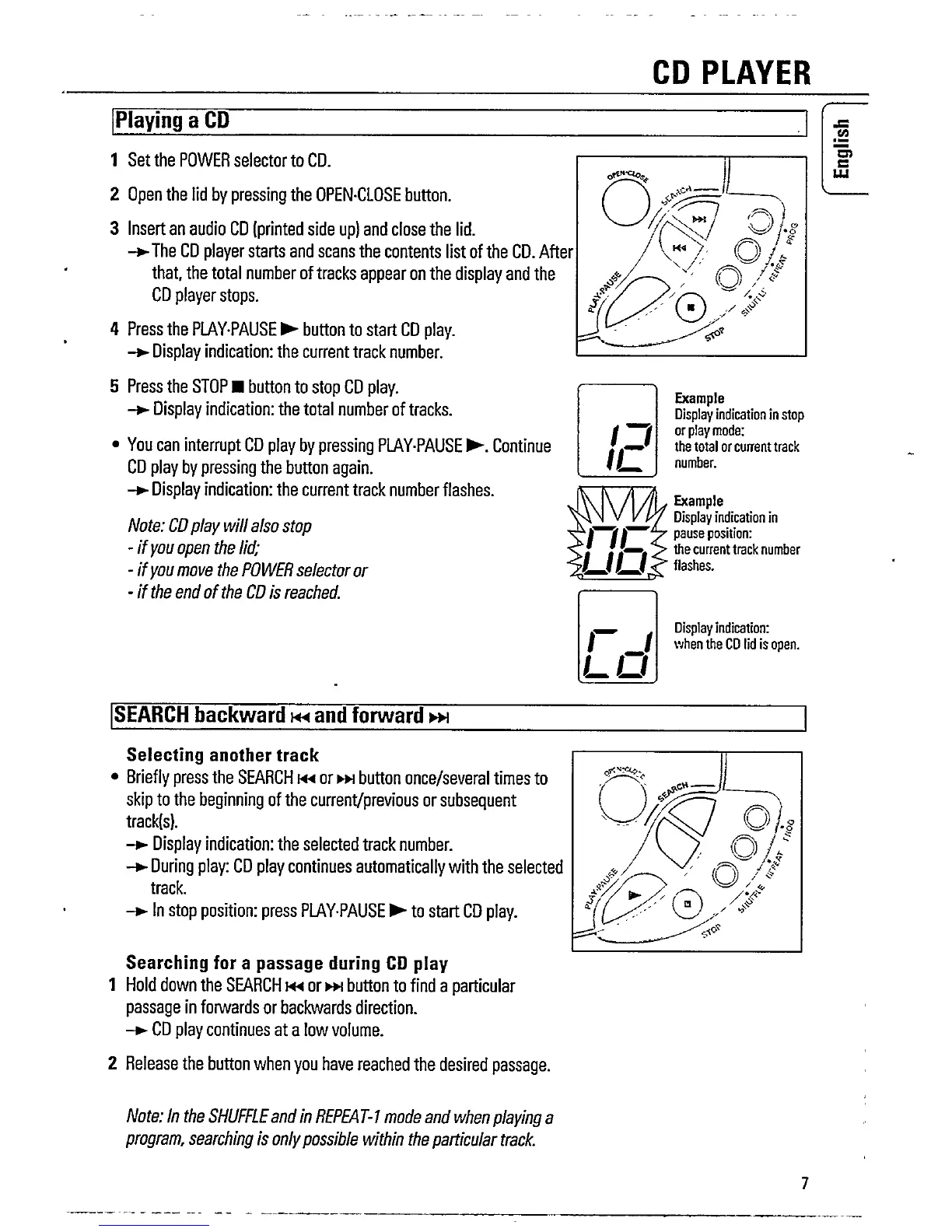 Philips AZ 8052 - CD Player Functionality; Playing and Stopping CDs; Navigating and Searching Tracks