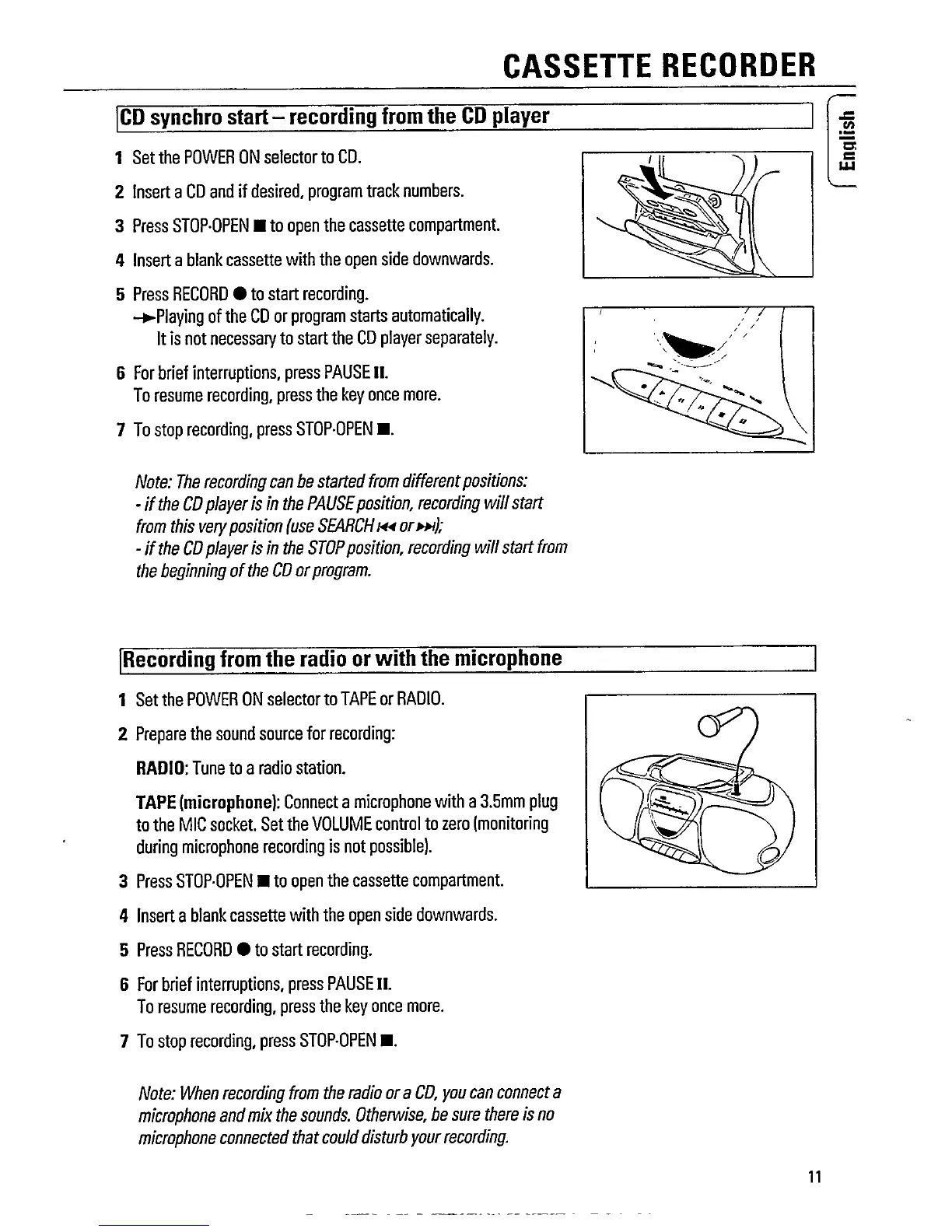 Philips AZ 8070 - CD Synchro Start; Recording from the Radio or with the Microphone