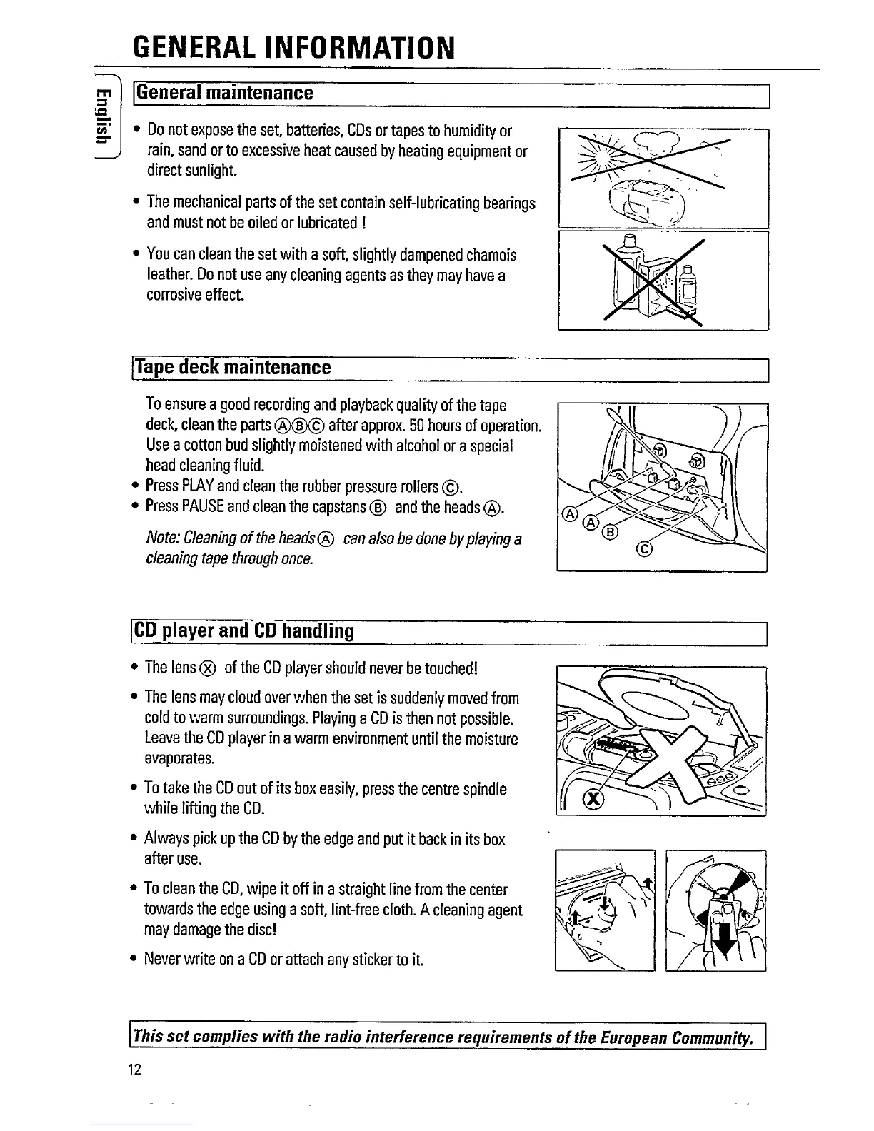 Philips AZ 8070 - General Maintenance; Tape Deck Maintenance; CD Player and CD Handling