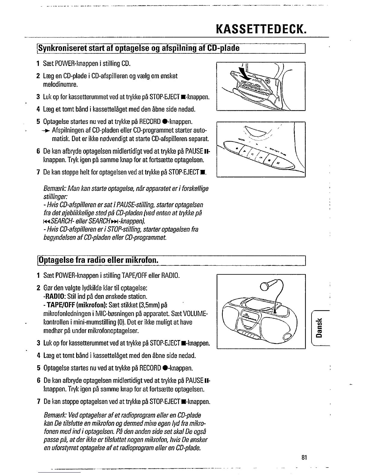 Philips AZ 8262 - Cassette Recording Options; Synchronized CD to Tape Recording; Recording from Radio or Microphone
