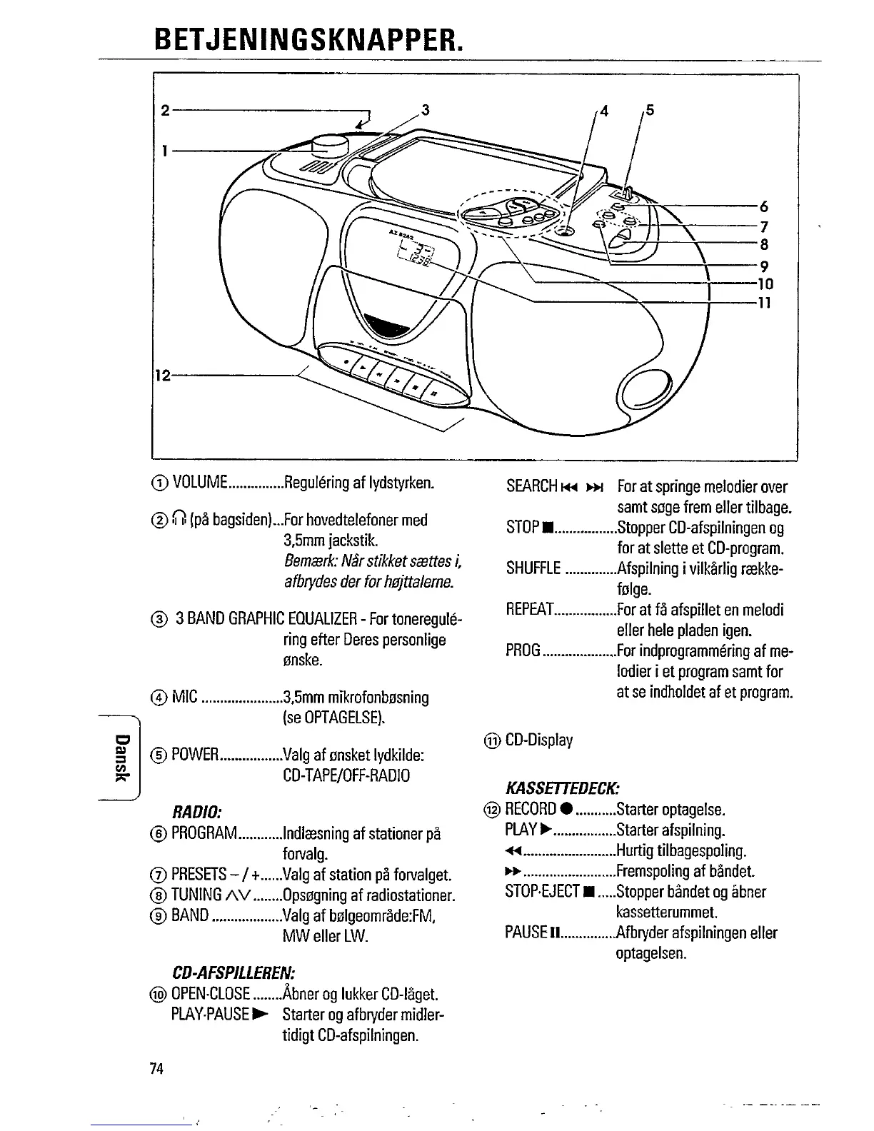 Philips AZ 8262 - Controls Overview; CD Player Controls; Cassette Deck Controls; Radio Controls