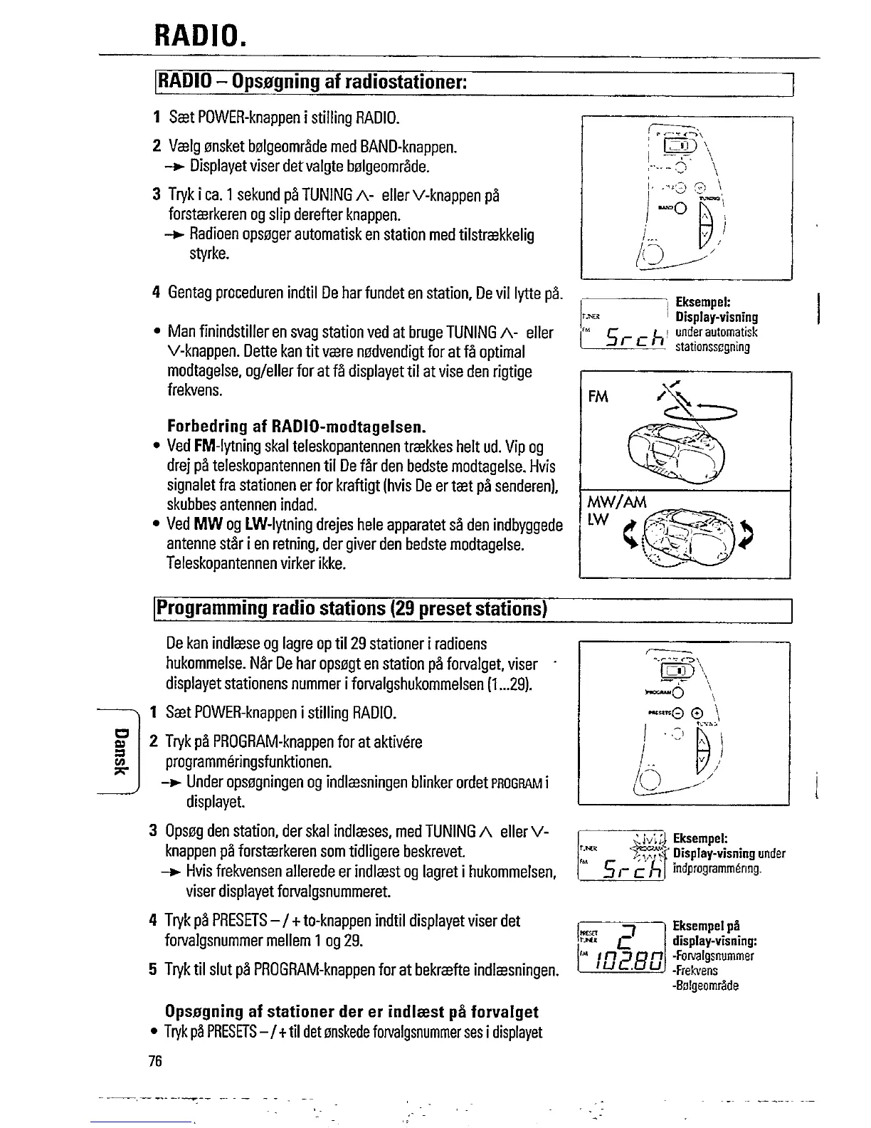 Philips AZ 8262 - Radio Operation; Tuning and Selecting Stations; Improving Radio Reception; Programming Preset Stations