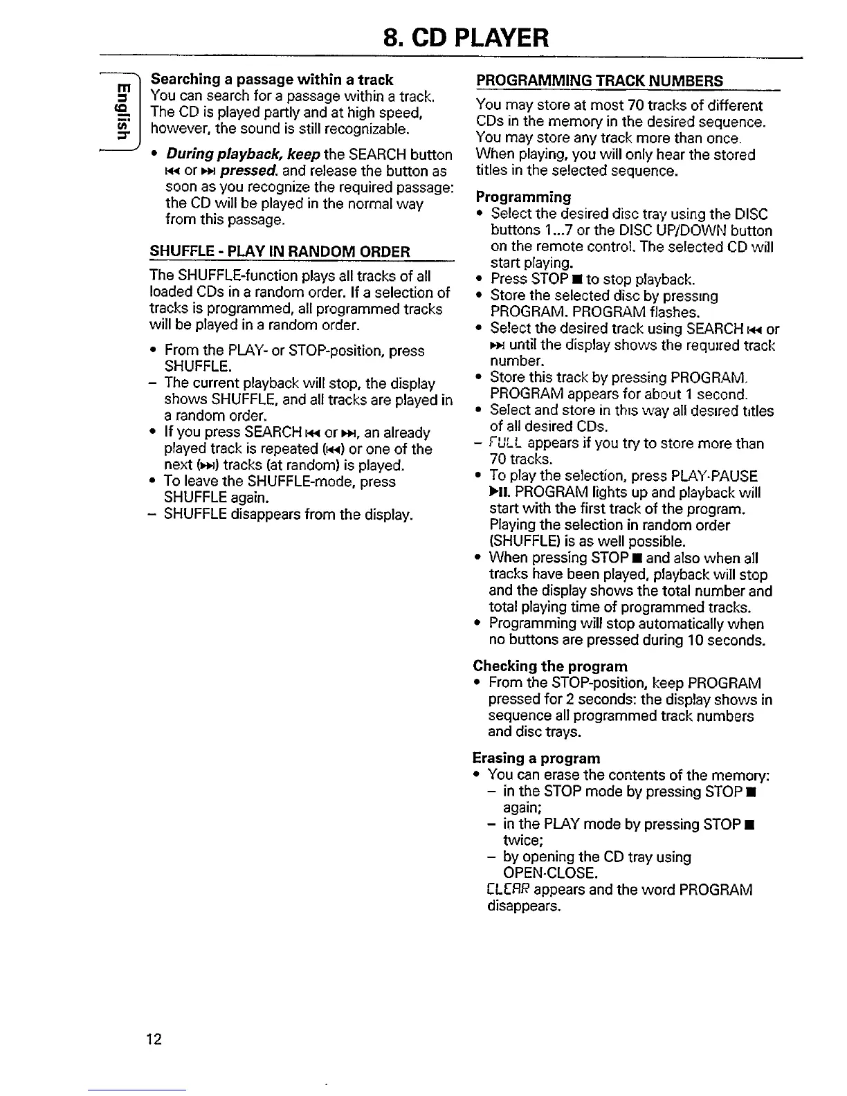 Philips AZ 9855 - Advanced CD Player Features; Track Searching and Shuffle Play; Programming and Erasing Tracks