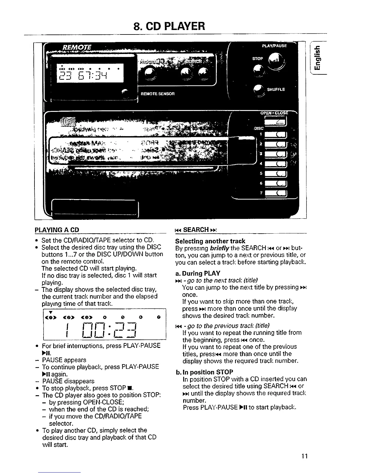 Philips AZ 9855 - CD Player Playback and Search; Playing and Stopping CDs; Track Selection and Searching