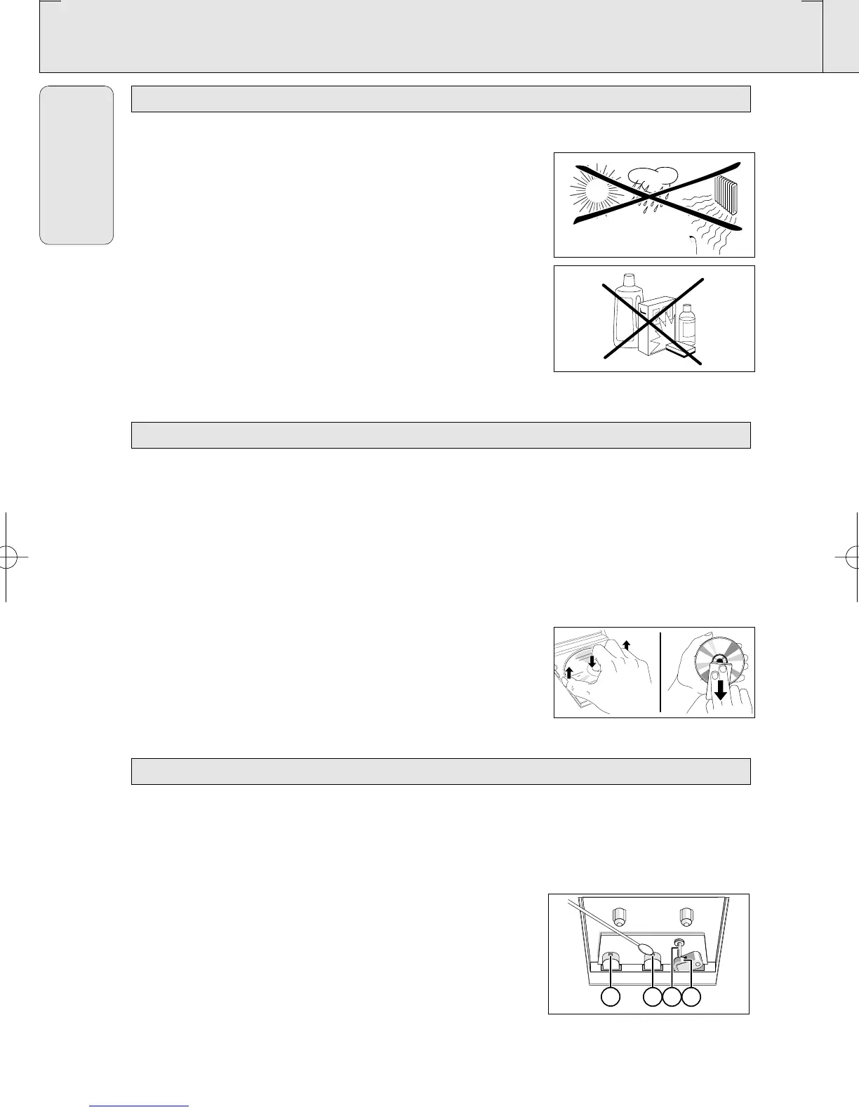 • The lens of the CD player should never be touched.