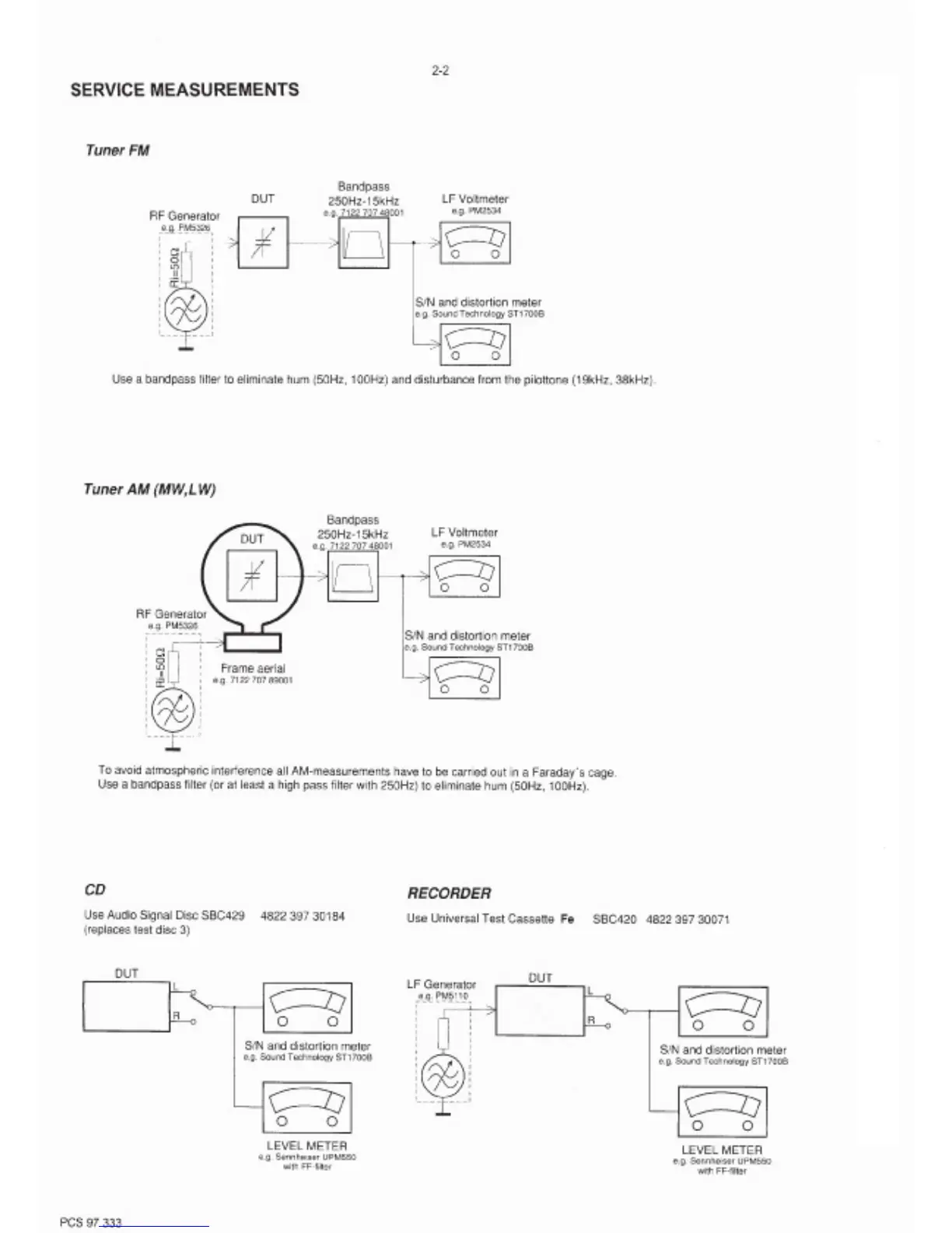 Philips AZ1008 - Service Measurements; Tuner FM Measurement Setup; Tuner AM Measurement Setup; CD Measurement Setup