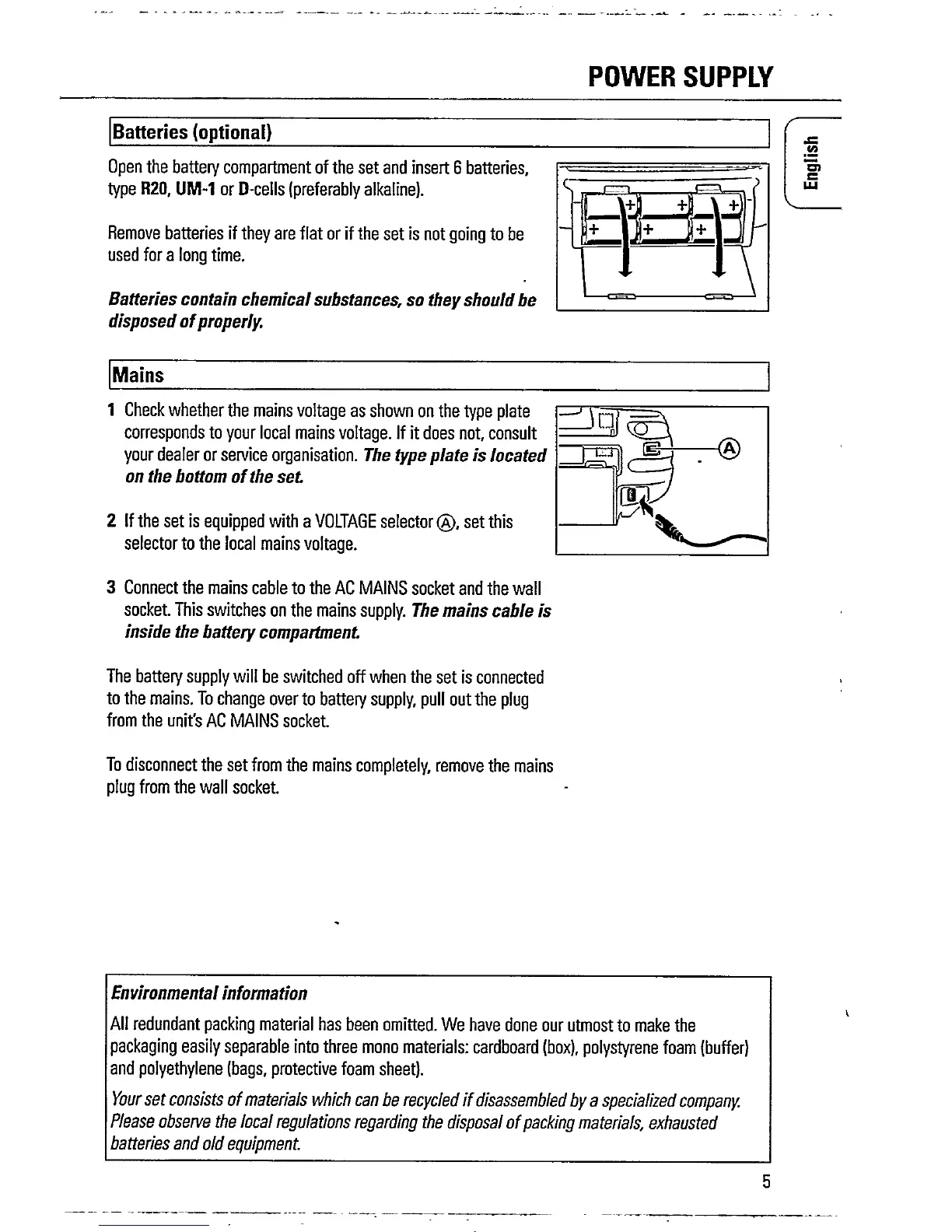 Philips AZ1010/05 - Power Supply; Batteries; Mains; Environmental Information