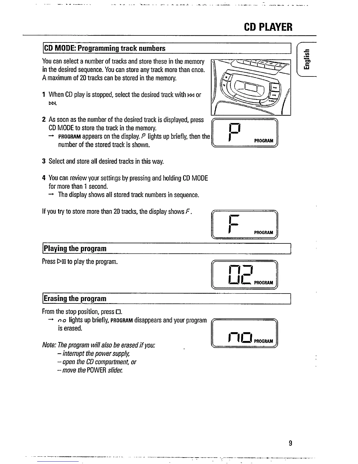 Philips AZ1010/05 - Programming Track Numbers; Playing the Program; Erasing the Program