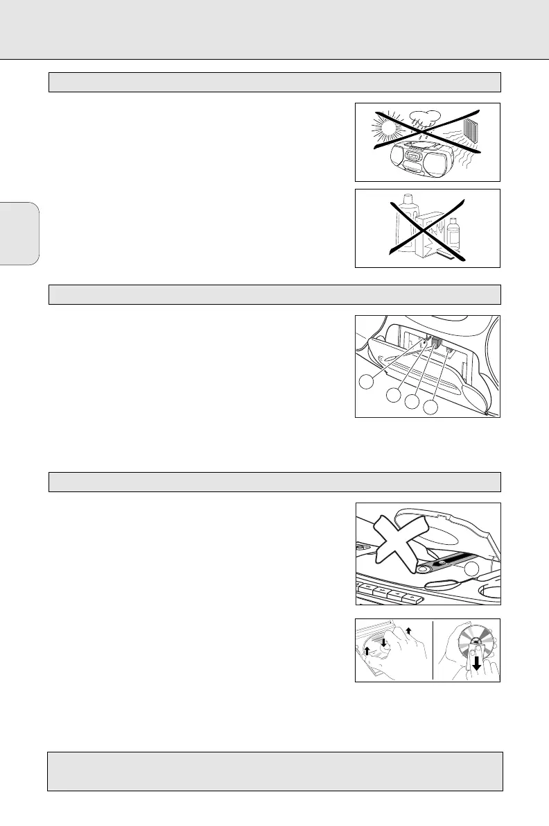 No exponer el equipo, pilas, CDs o cintas a la humedad, lluvia,