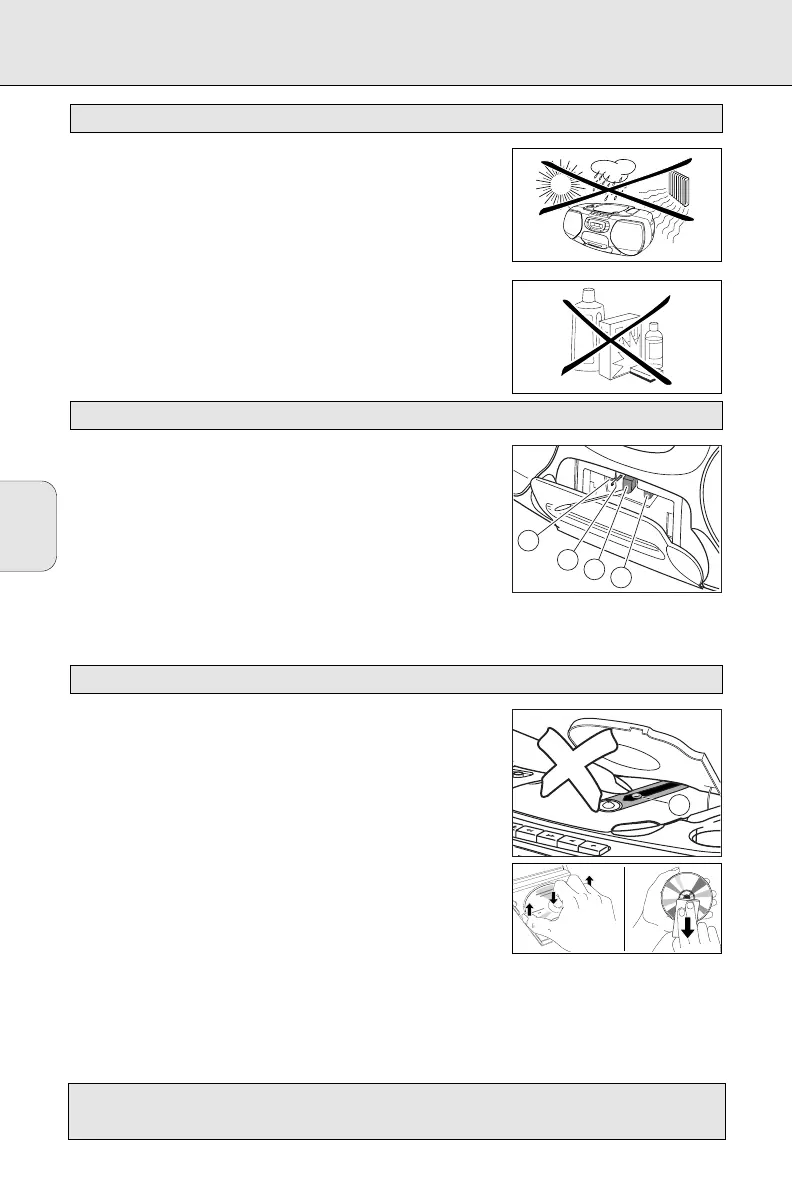 Stel het toestel, de batterijen, CD’s of bandjes niet bloot aan vocht,