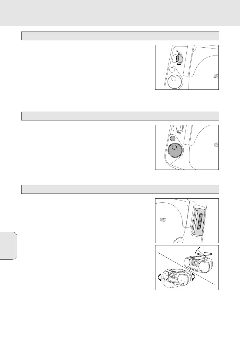 Indstil POWER skubbekontakten på den ønskede lydkilde: CD,