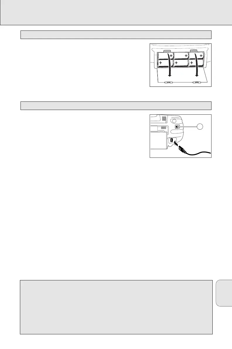 Abra o compartimento das pilhas do aparelho e introduza 6 pilhas