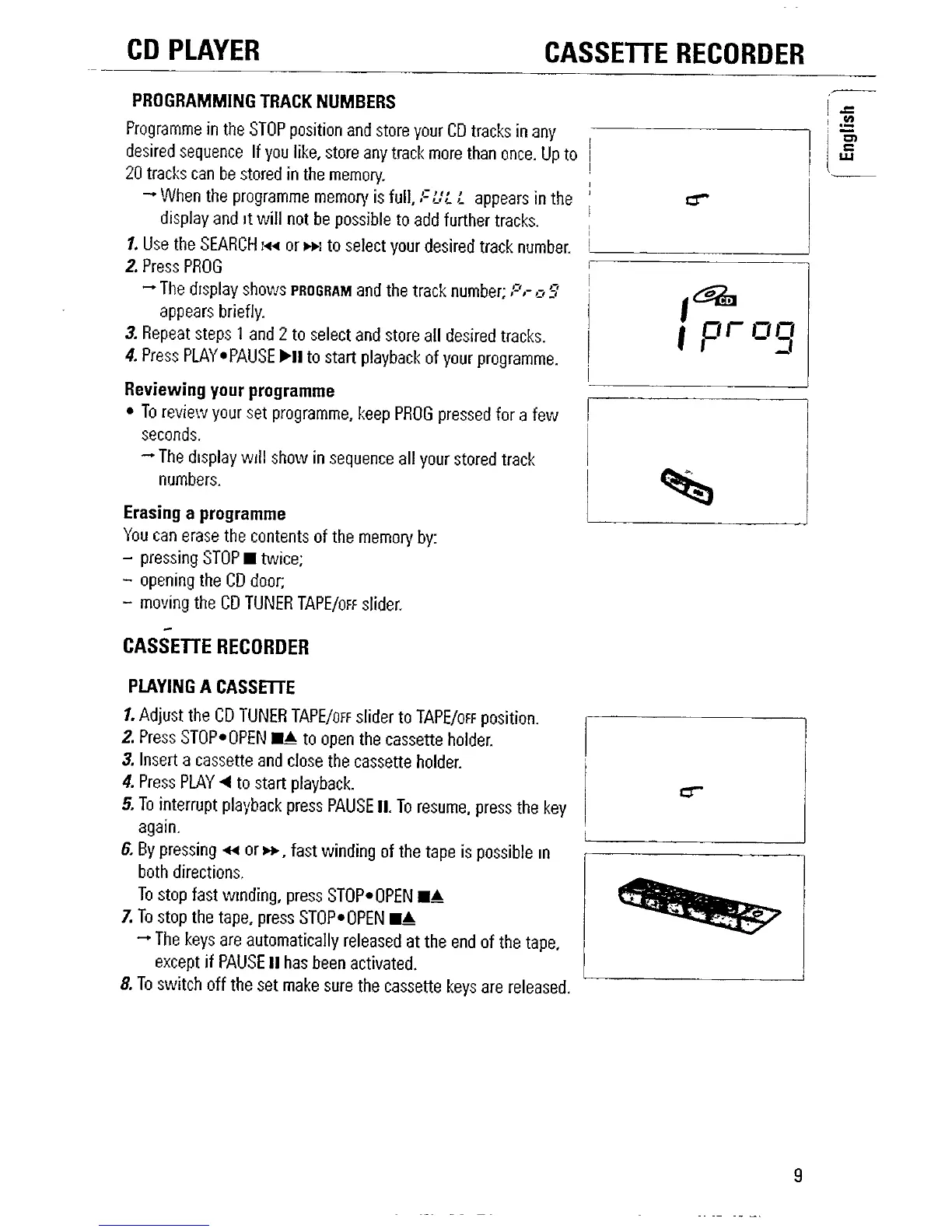 Philips AZ1020 - CD Programming and Cassette Playback; CD Track Programming; Playing a Cassette Tape