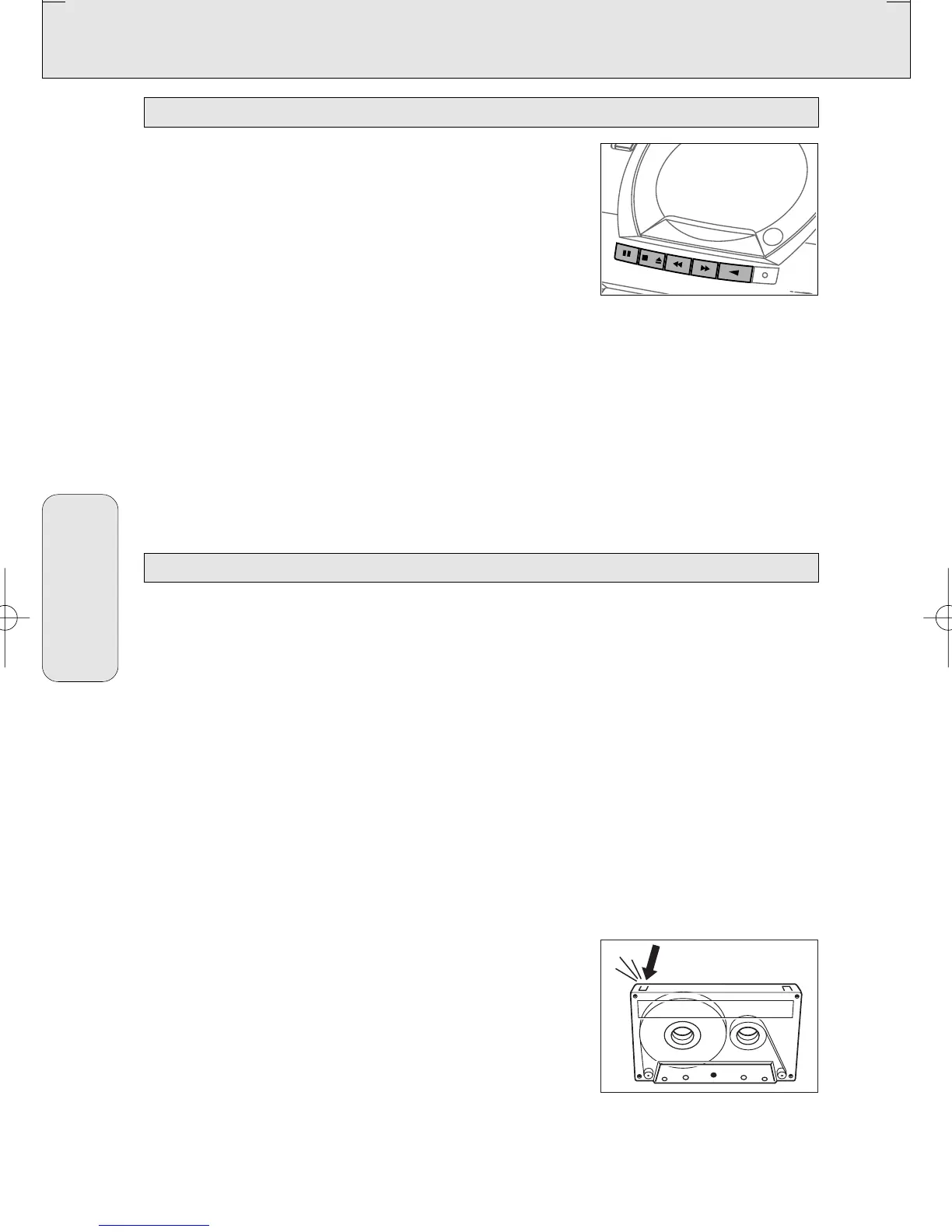 Al principio y al final de cada cinta, no tiene lugar grabación