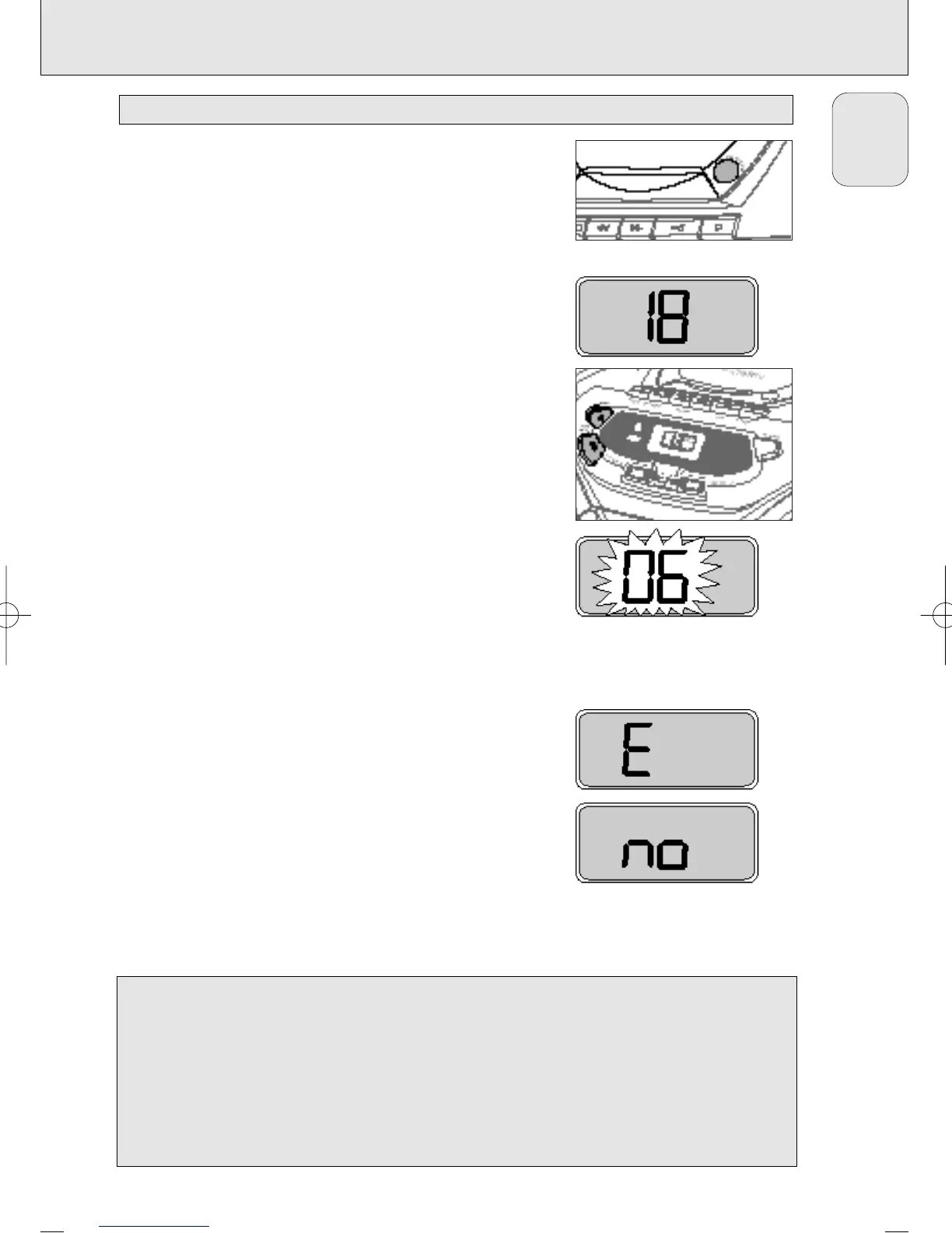 CD player cannot read the CD, the display shows E or no. (See