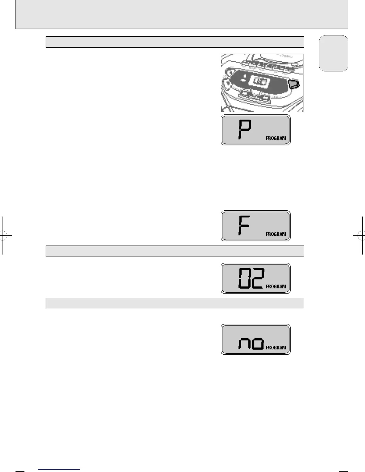 PROGRAM appears on the display. P lights up briefly, then the