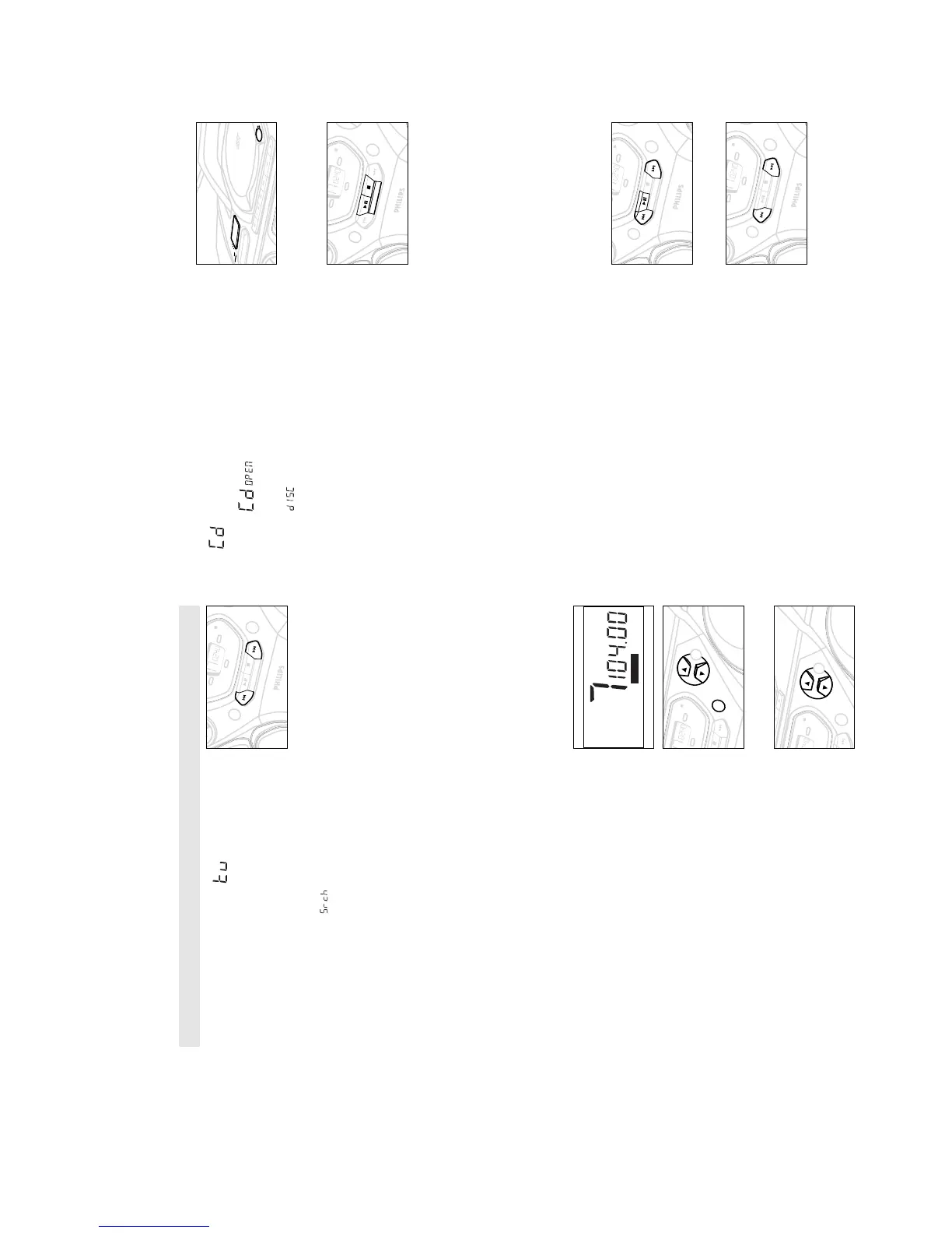 During a CD programme or if SHUFFLE/ REPEAT active, searching is
