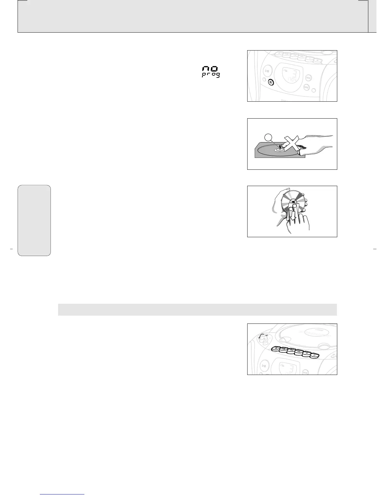 • Para extraer un CD de la caja, presione el eje central y levante