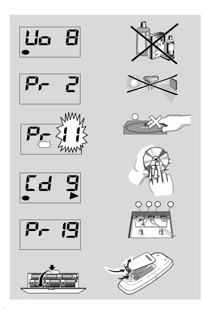 • Don't expose the set, batteries, CDs or cassettes to