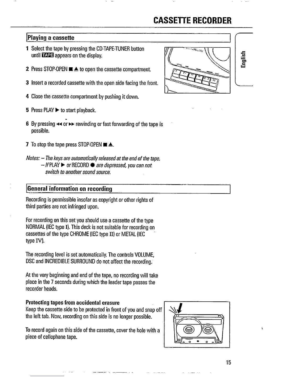 Philips AZ1518 - Cassette Recorder; Playing Cassette Tapes