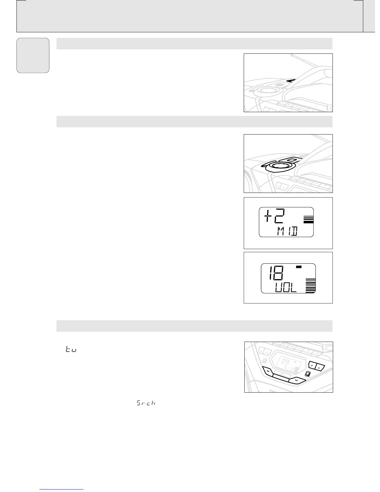 • To tune to a weak station, press SEARCH ∞ or § briefly and