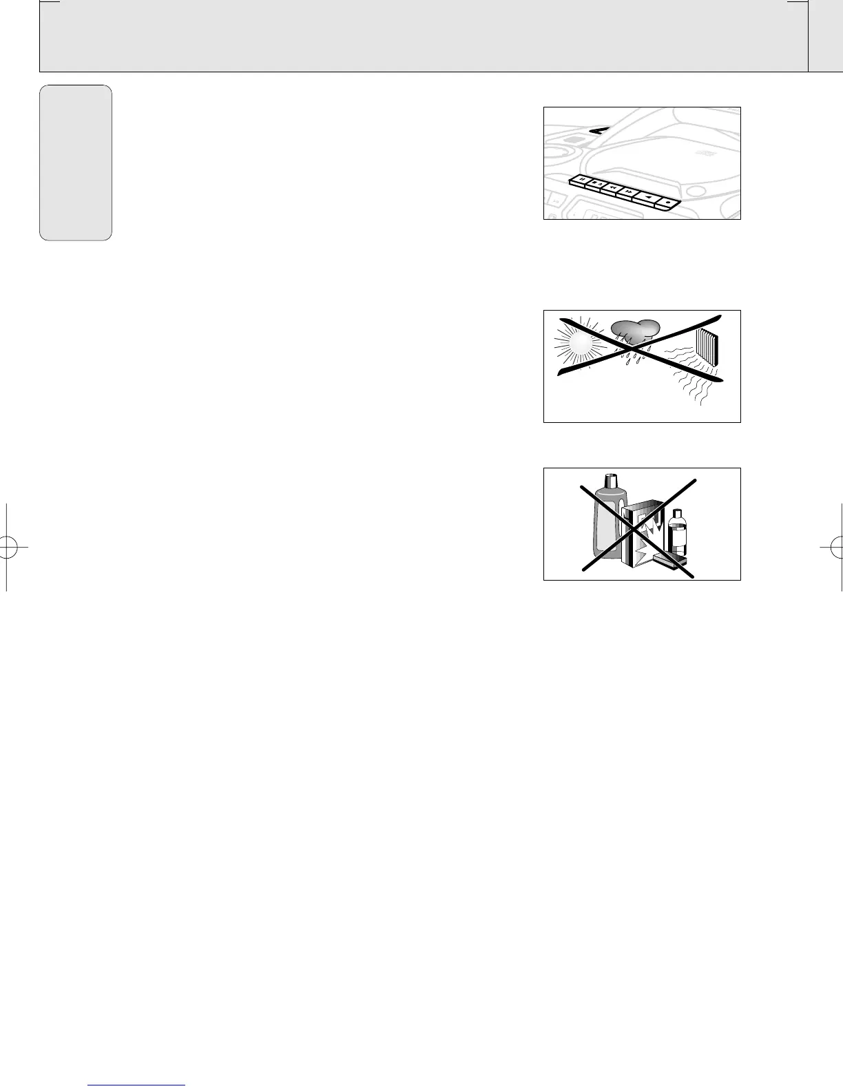 • Do not expose the set, batteries, CDs or cassettes to humidity,