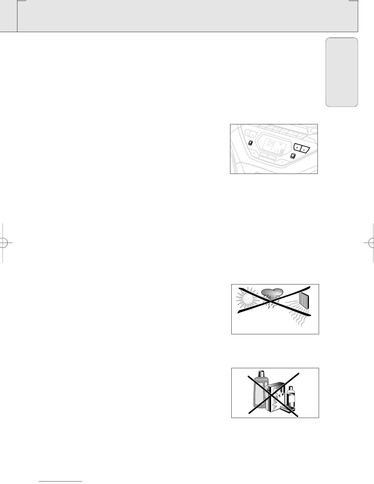 • Do not expose the set, batteries, CDs or cassettes to humidity,