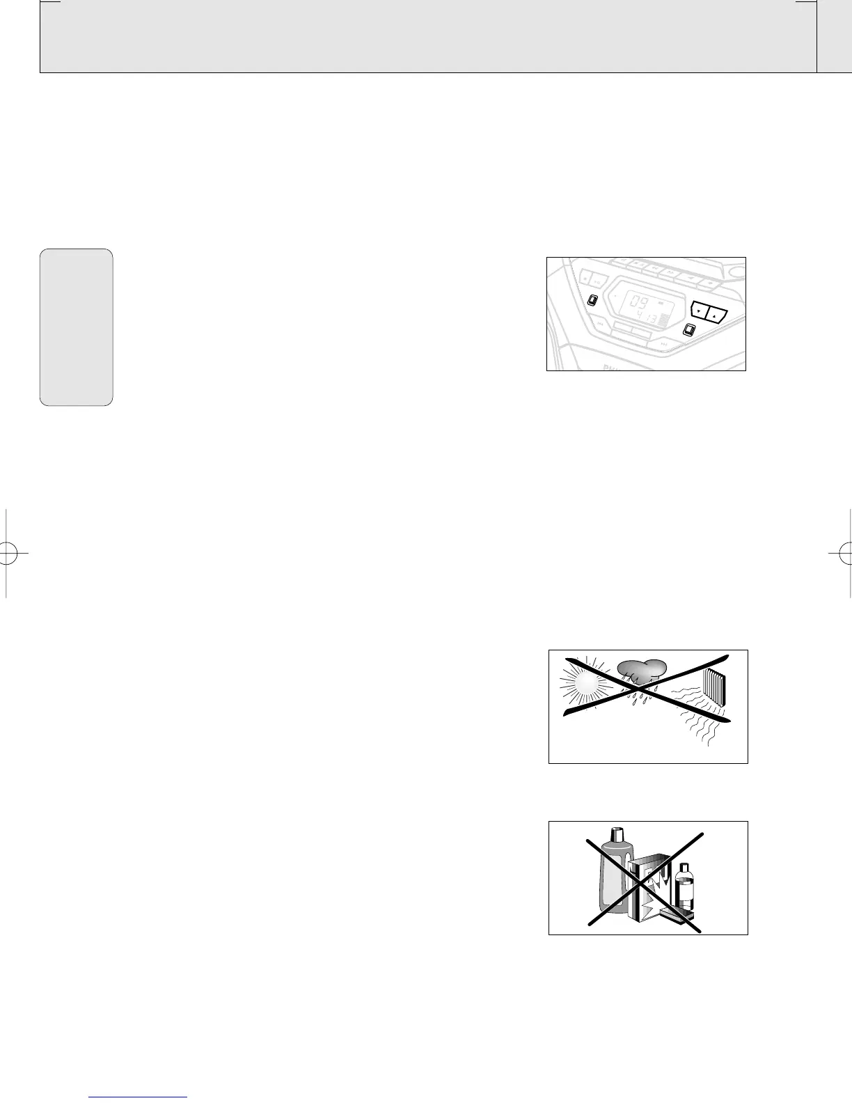• Ne pas exposer l'équipement ni les piles ni les CD ni les cassettes