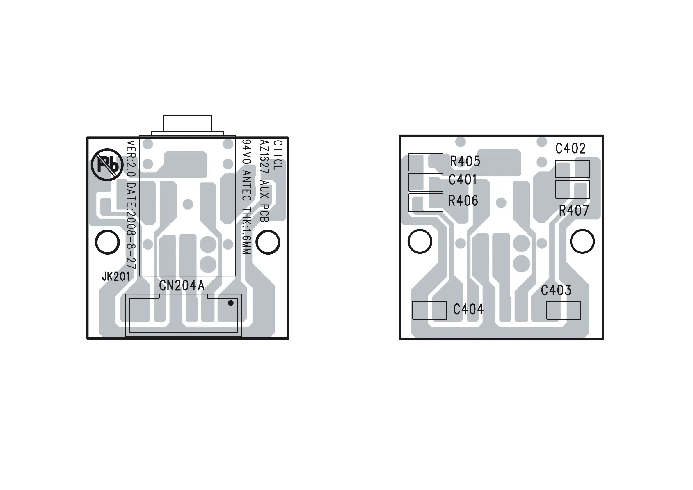 Philips AZ1627 - Aux Jack Board Layout (Top View); Aux Jack Board Layout (Bottom View)