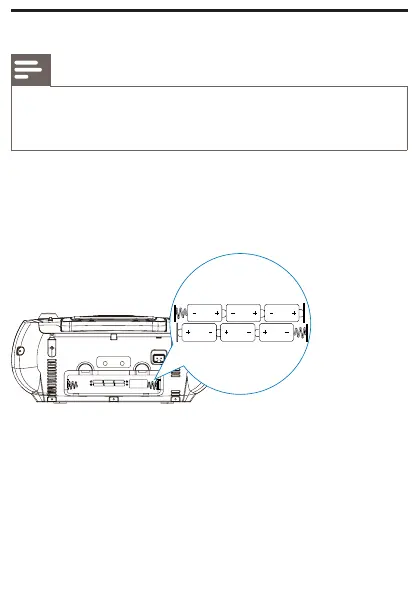 2 Insert 6 batteries (type: R-14, UM-2 or C-cells) with correct