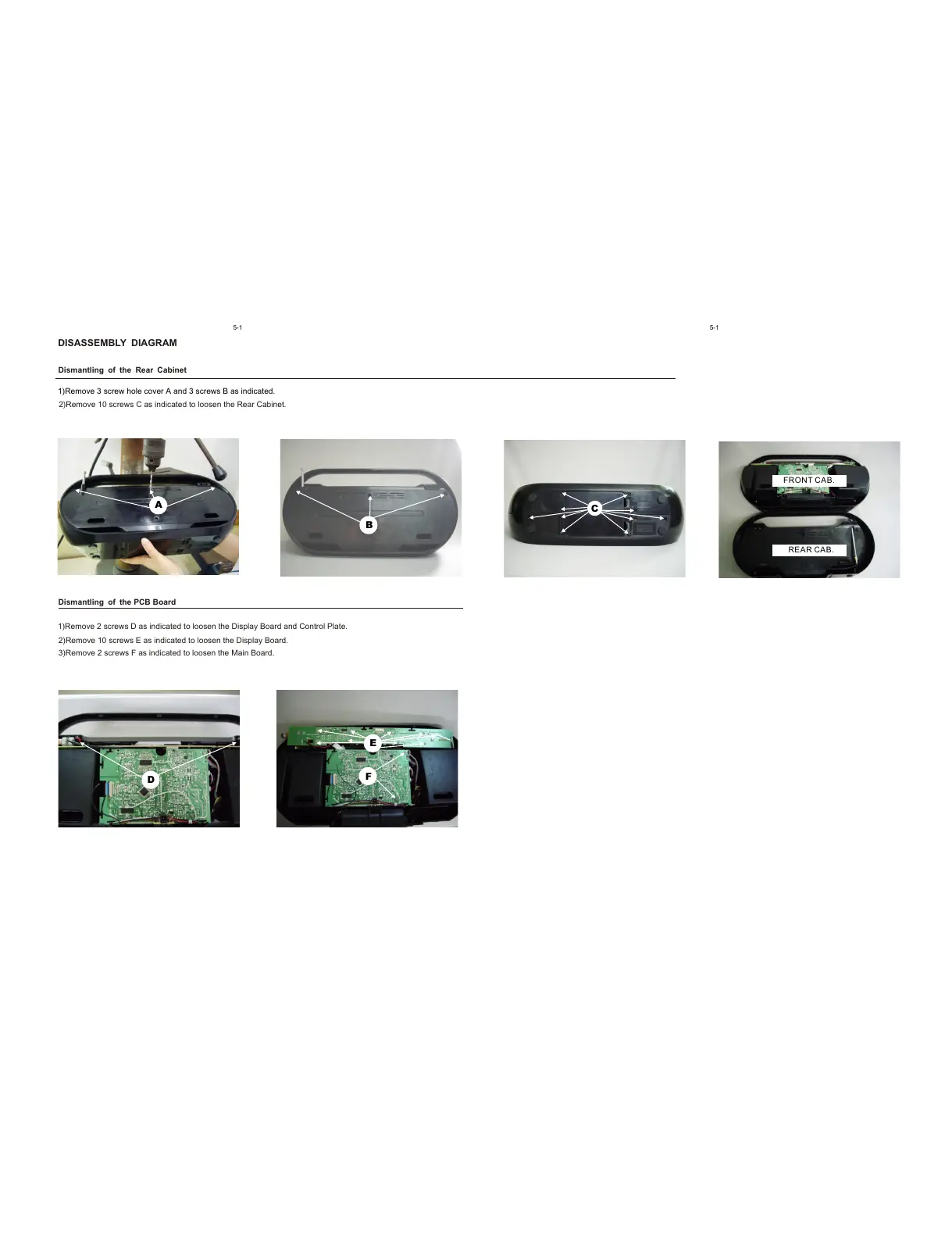 2)Remove 10 screws C as indicated to loosen the Rear Cabinet.