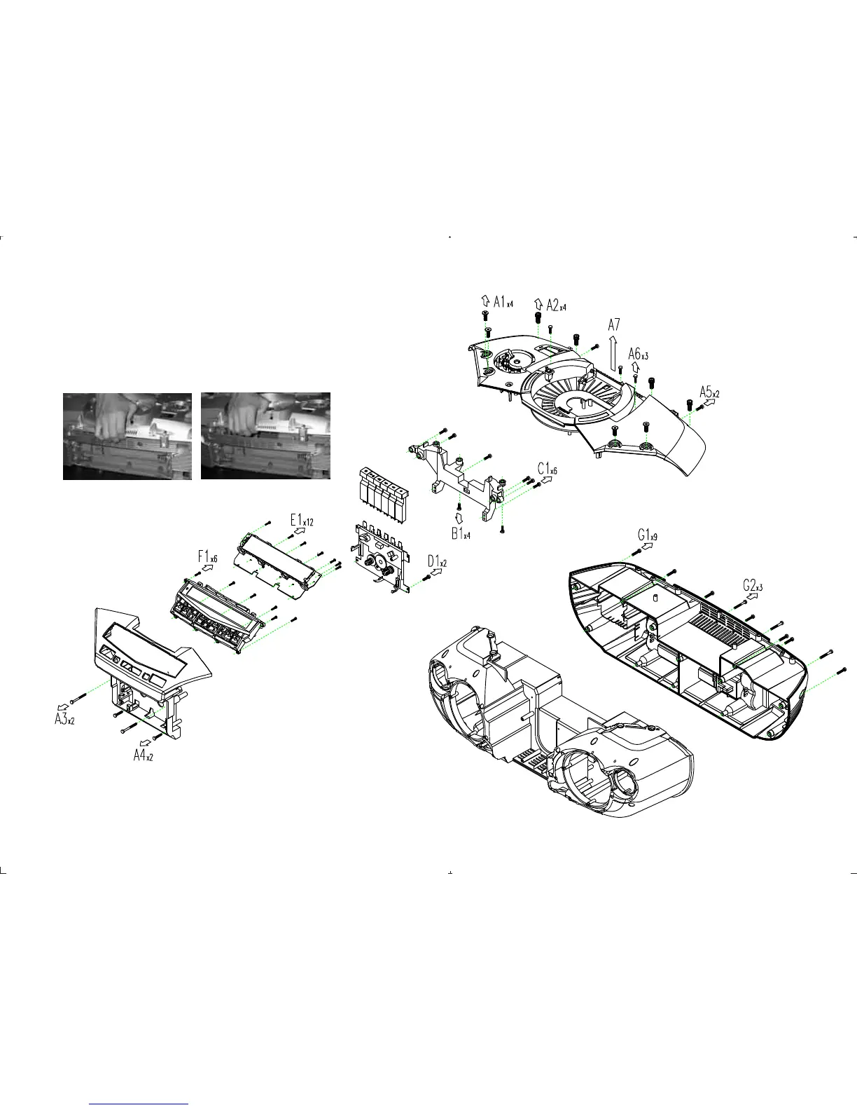 A7. Lift from the centre back (ventilation slot) to remove Top Cabinet (see fig. 1 & 2)