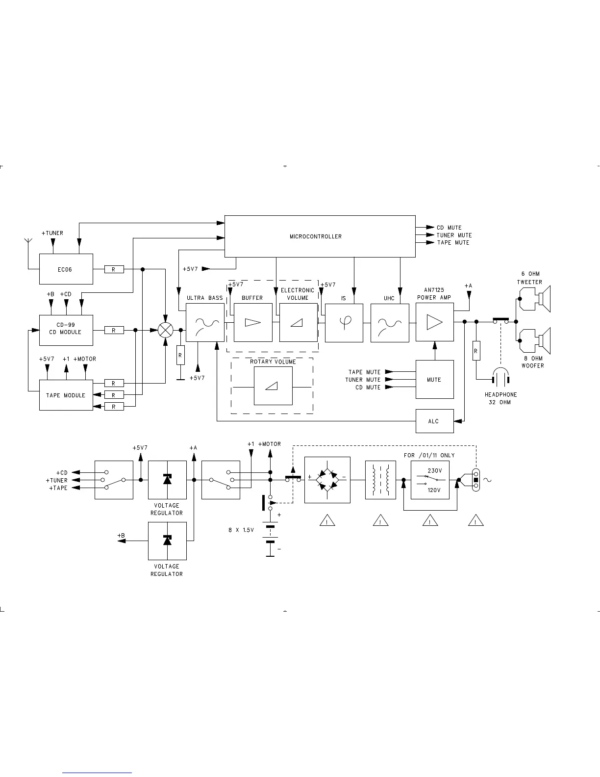 Philips AZ2030 - Block Diagram; System Overview Diagram; Signal Flow and Power Distribution