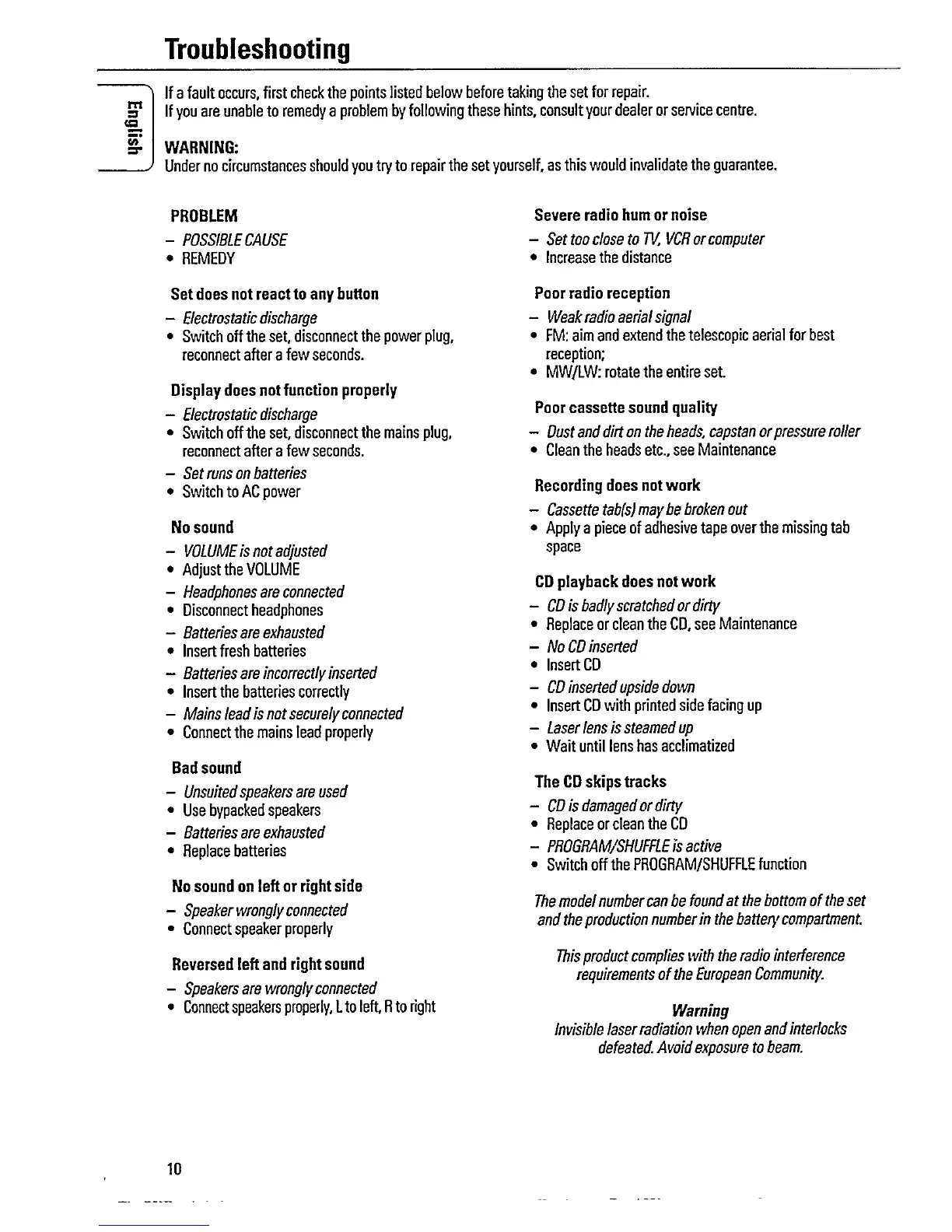 Philips AZ2100 - Troubleshooting; Common Issues and Solutions; CD Playback and Skipping Issues
