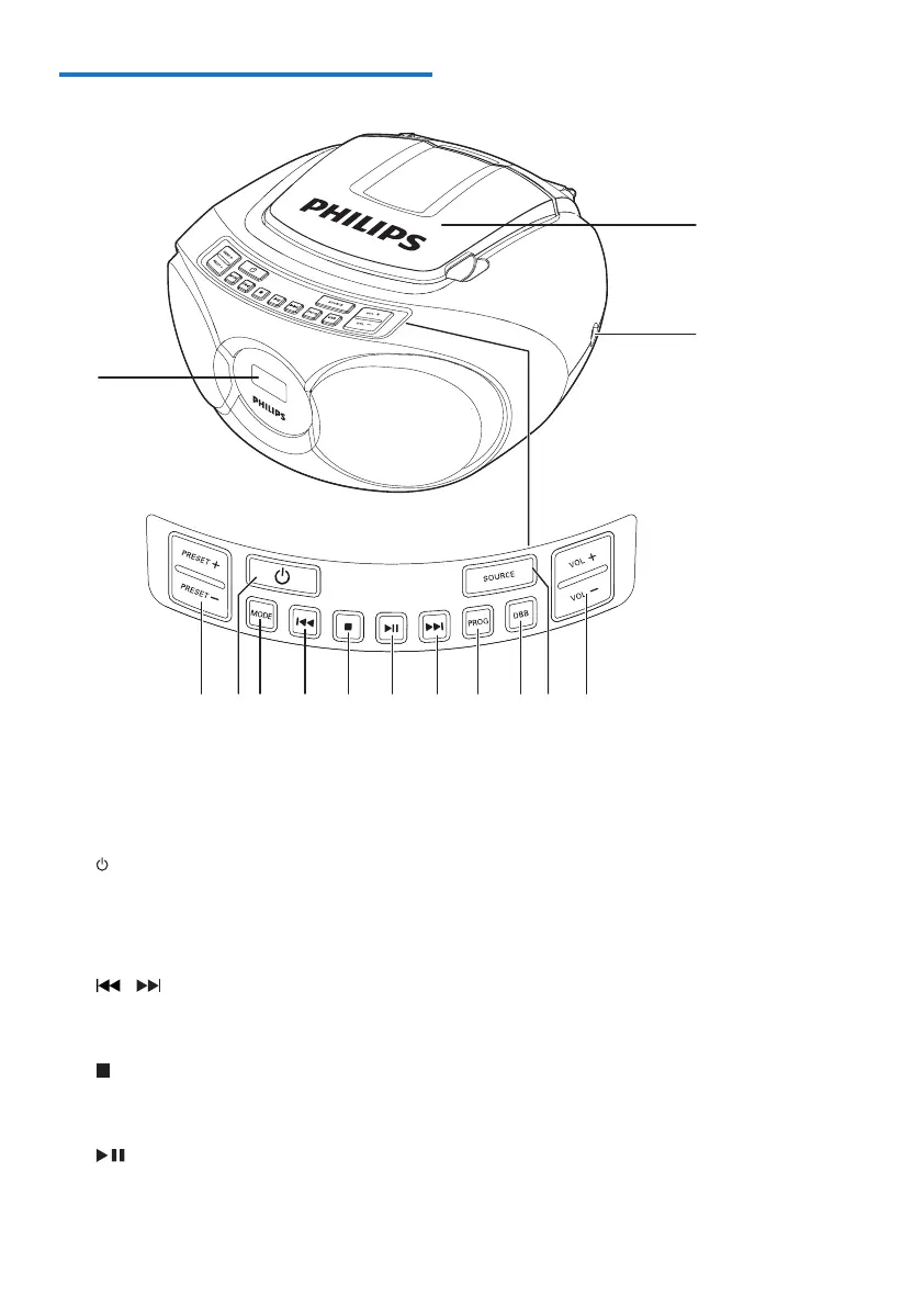 • Turn the CD sound machine on or off.