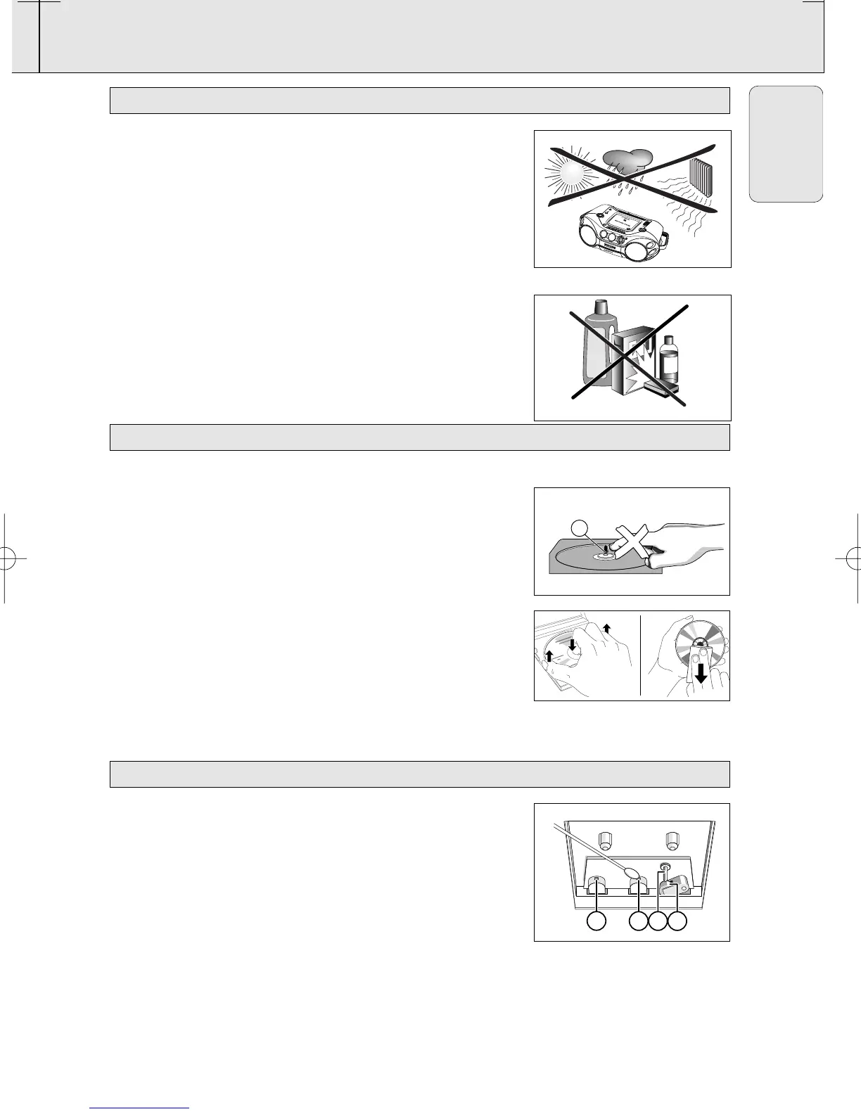 • Do not expose the set, CDs, batteries or cassettes to humidity, rain,