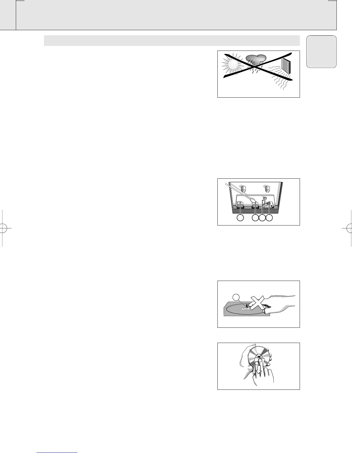 • To take a CD out of its box, press the centre spindle while