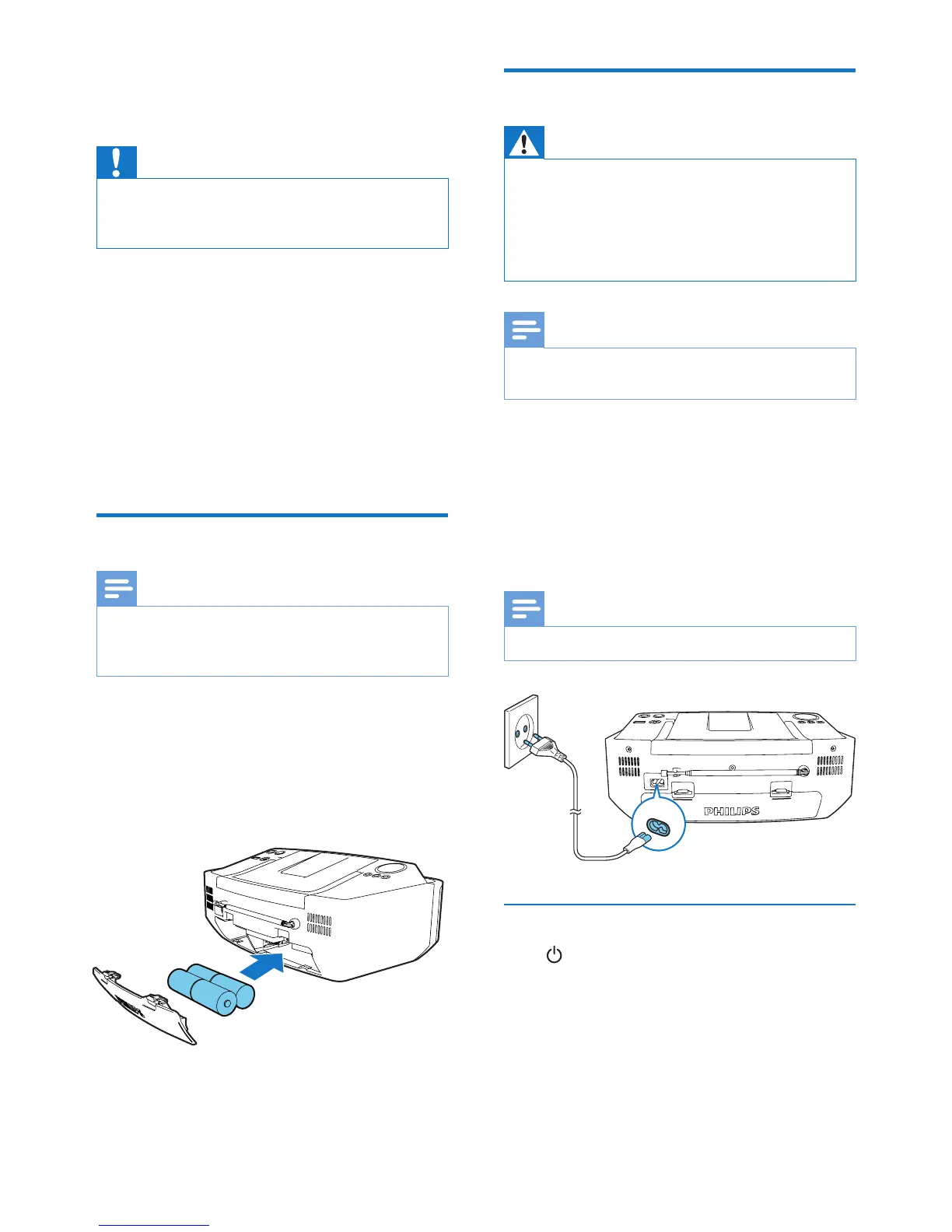 • Risk of electric shock! When you disconnect the AC