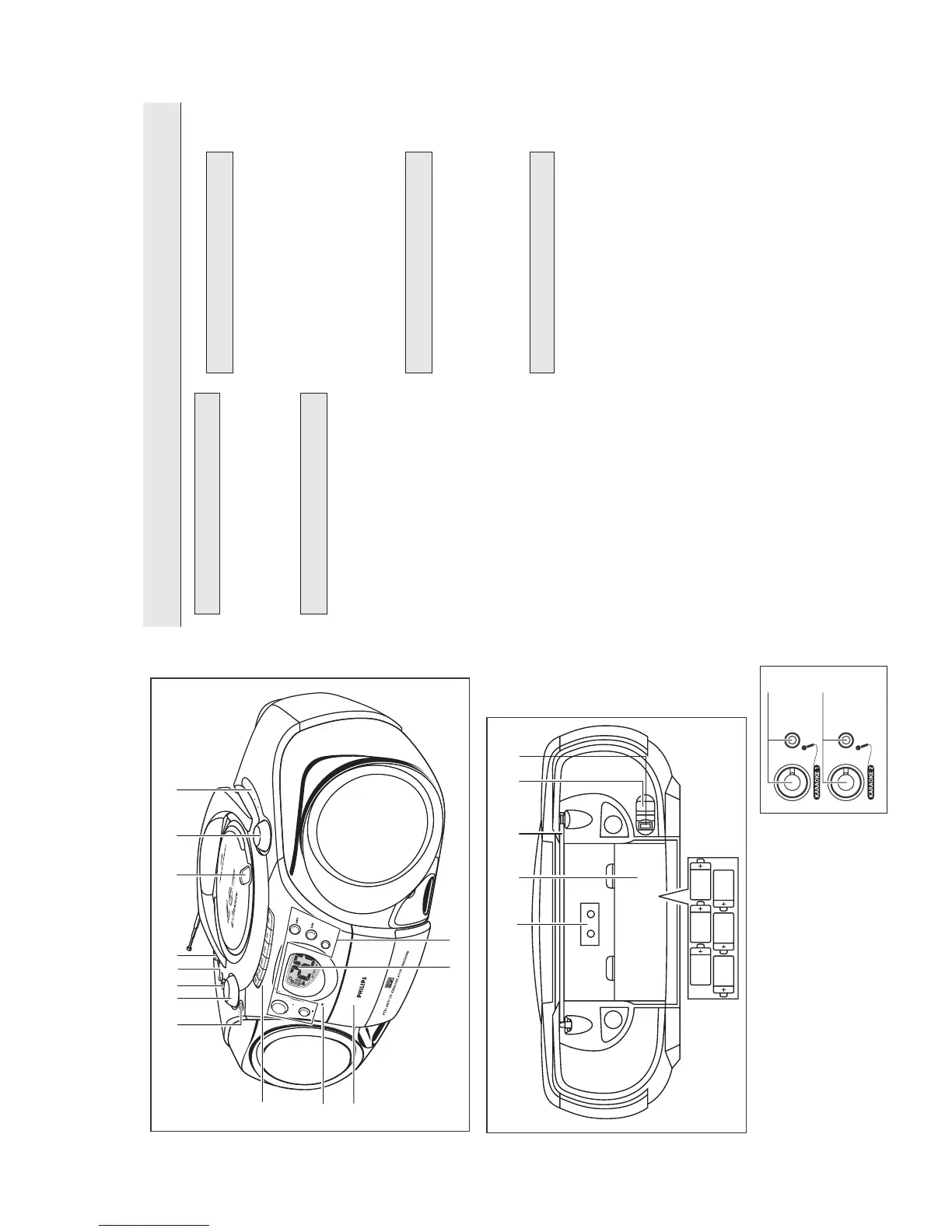 FM, MW, CD/VCD, TAPE/OFF.- to select