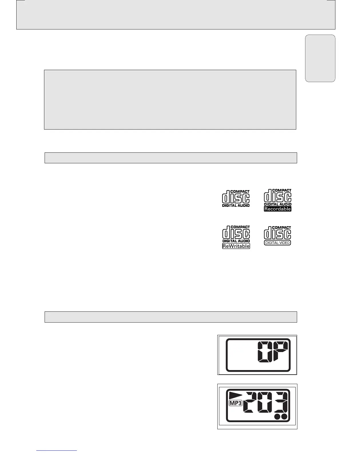 This set can play all digital audio CD, video CD, finalised digital audio CD-Recordable (CDR) discs