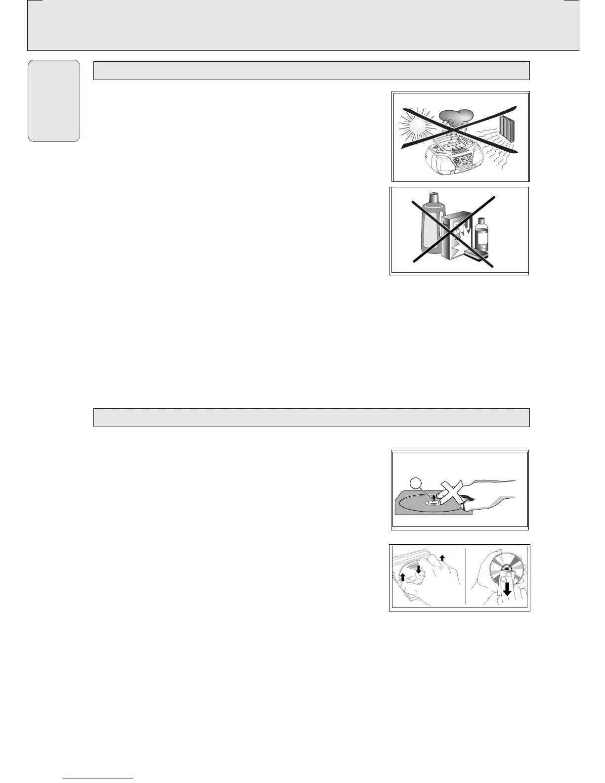 • The lens of the CD player should never be touched.