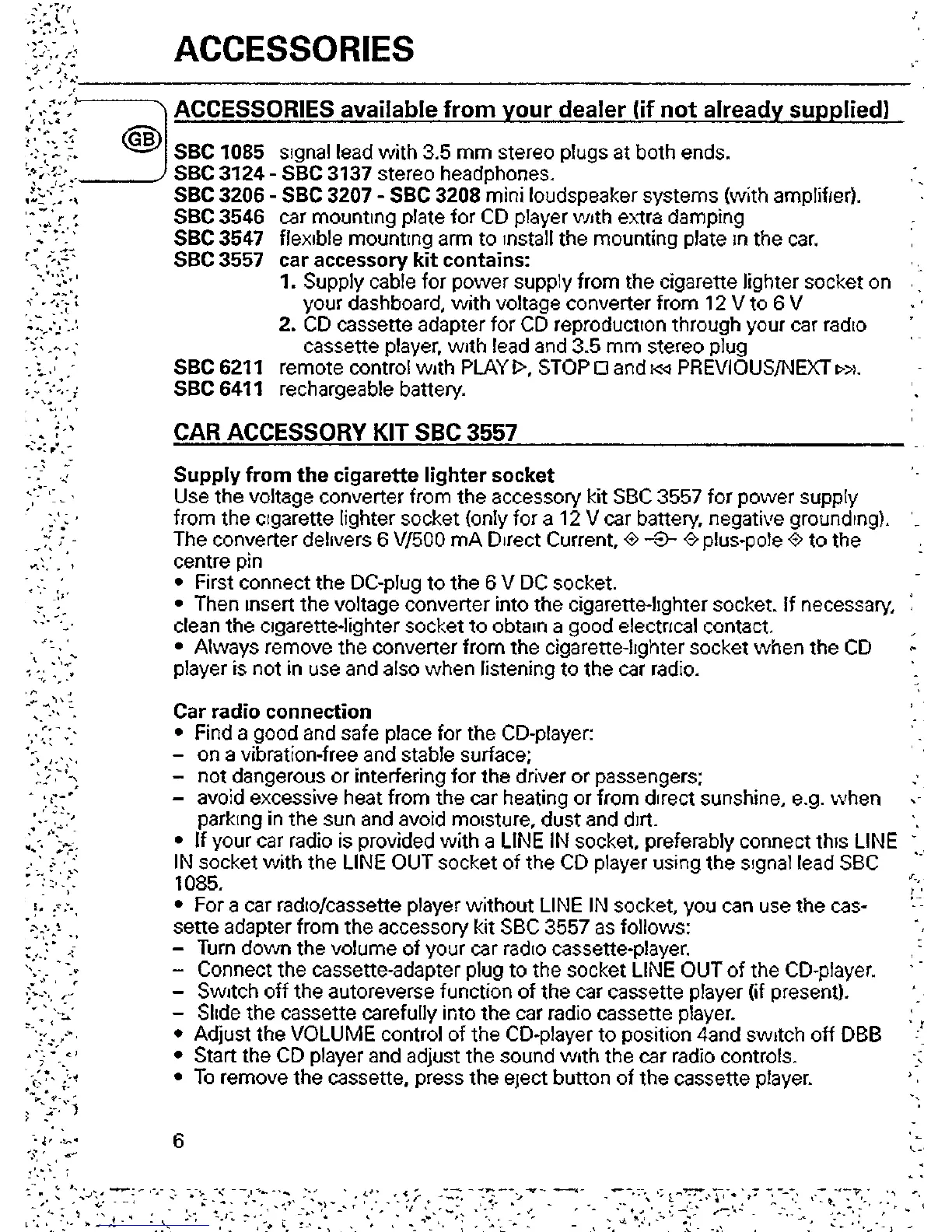 Philips AZ6810 - Accessories; Supply from the Cigarette Lighter Socket; Car Radio Connection